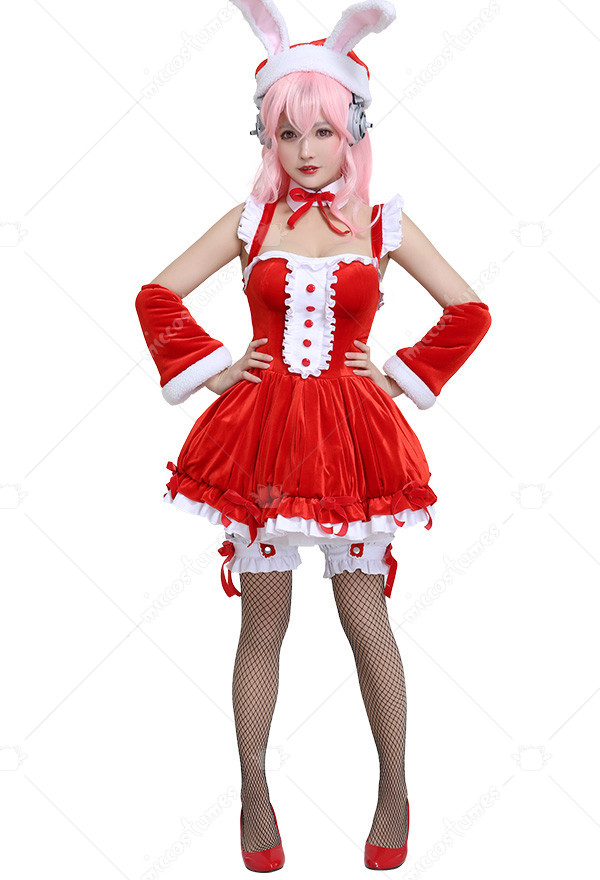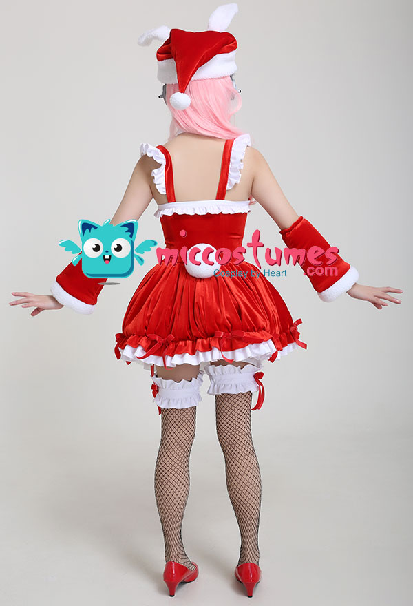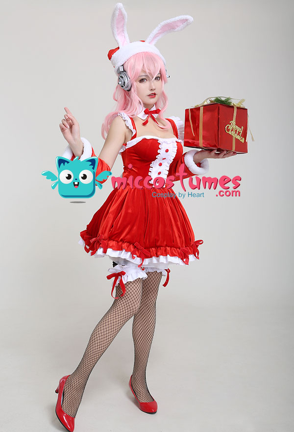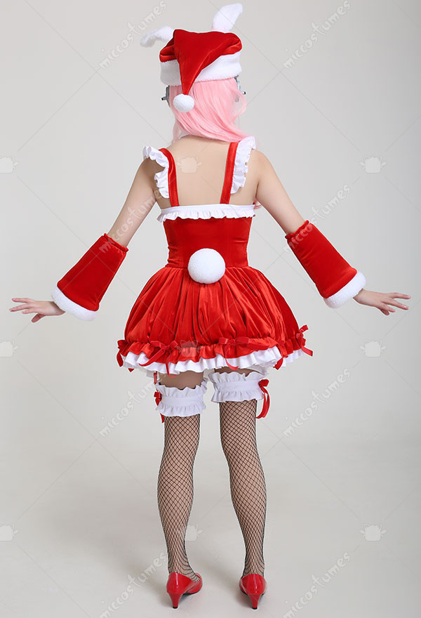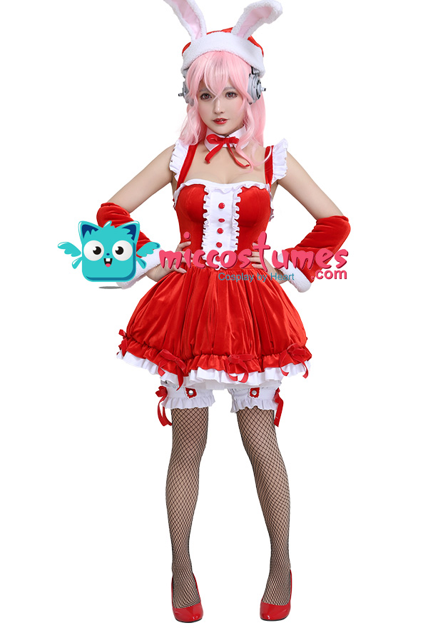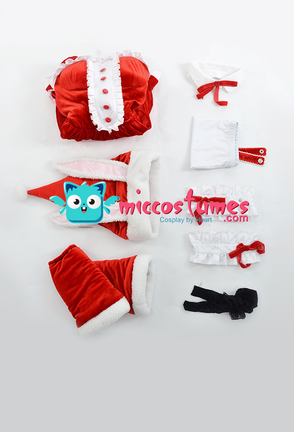 The costume includes dress, hat, fake collar, sleeves*2, leg decoration*2, stockings, panties. It is made of polyester, polar fleece.