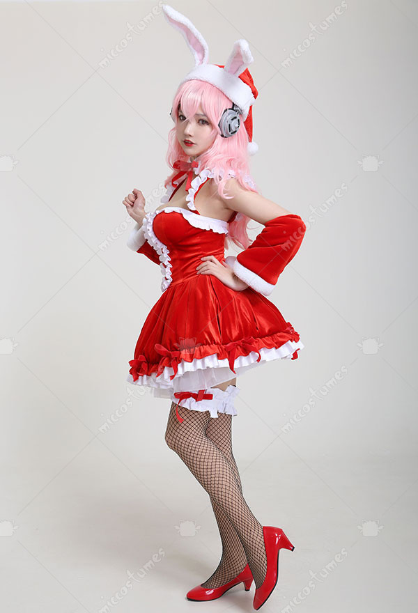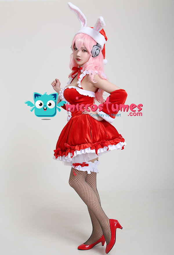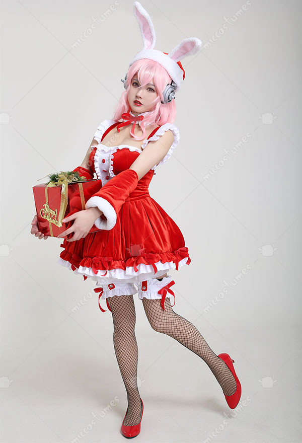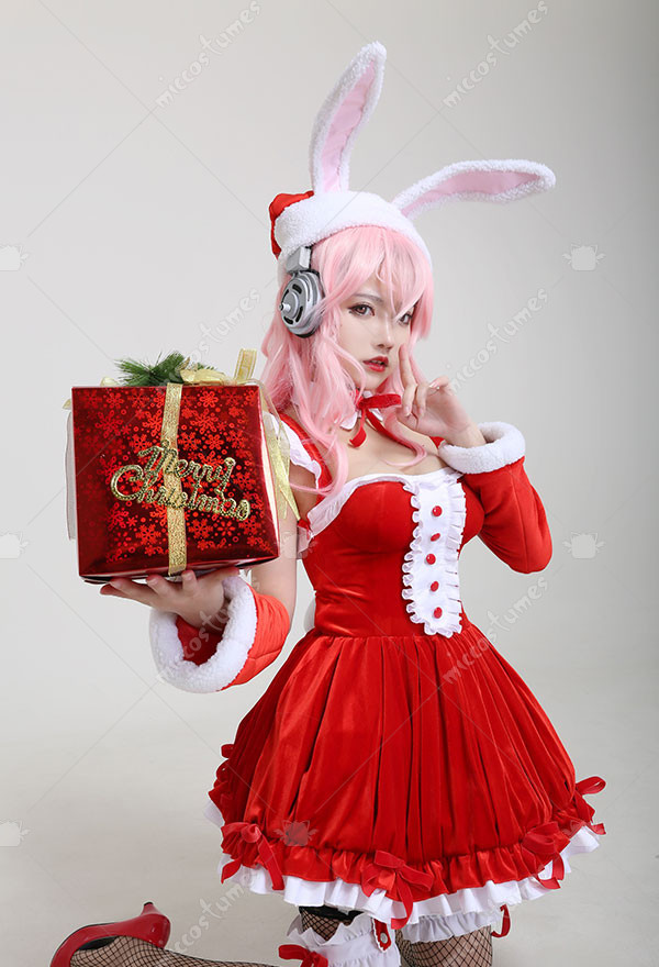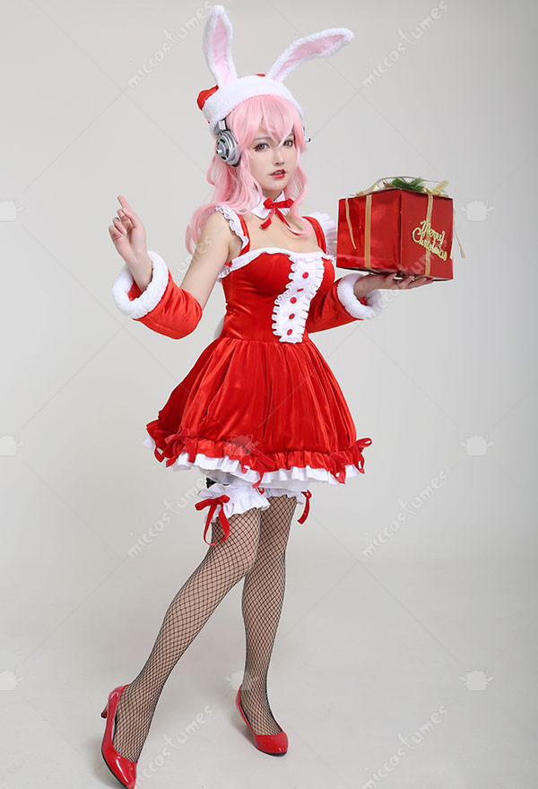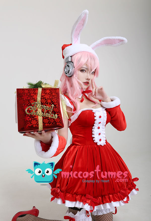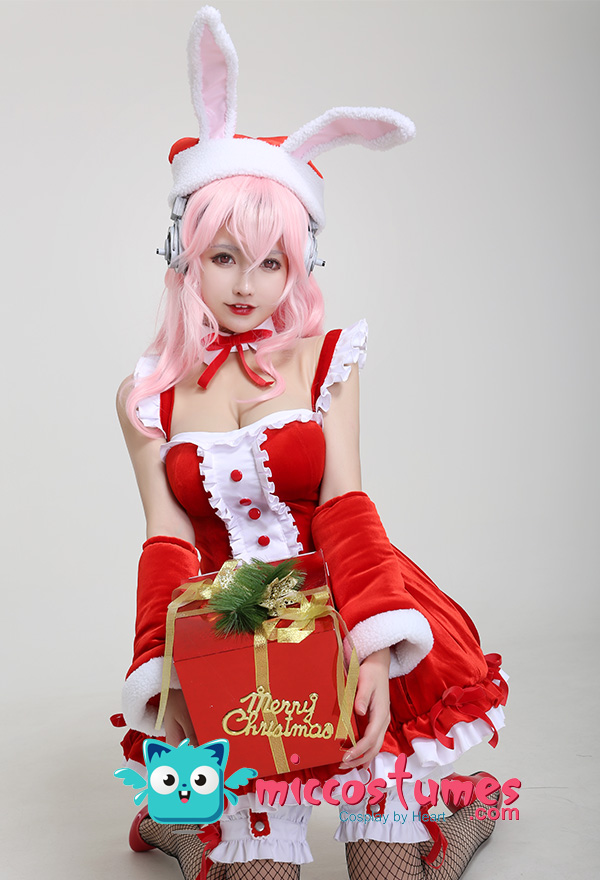 The costume includes dress, hat, fake collar, sleeves*2, leg decoration*2, stockings, panties. It is made of polyester, polar fleece.