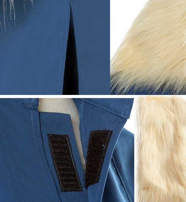 This costume includes coat, pants, long scarf. It is made of uniform fabric. It is well made and exquisite in details.