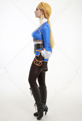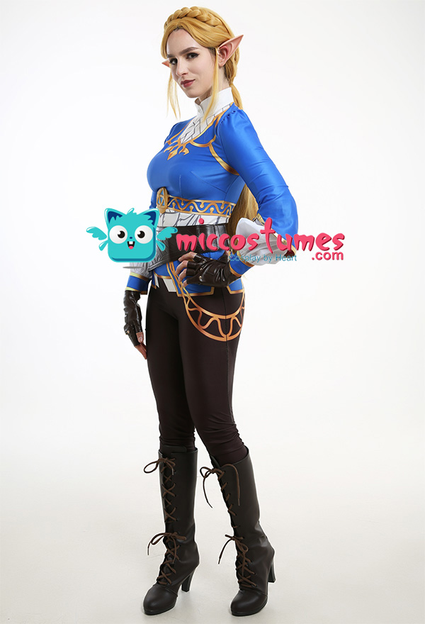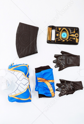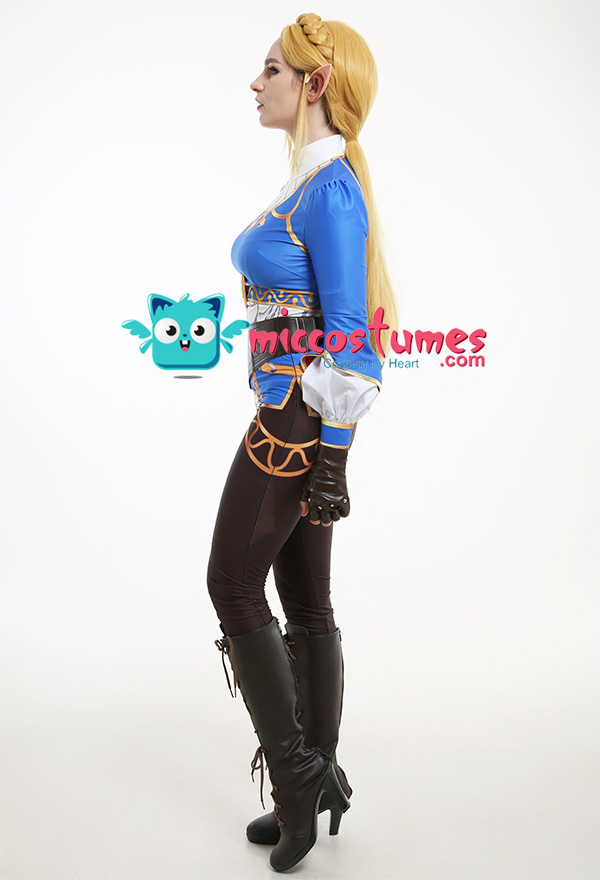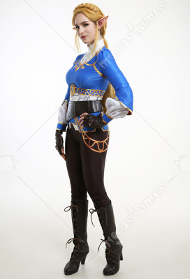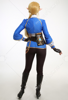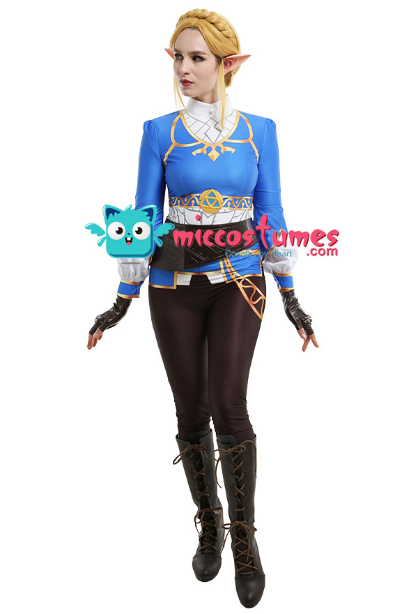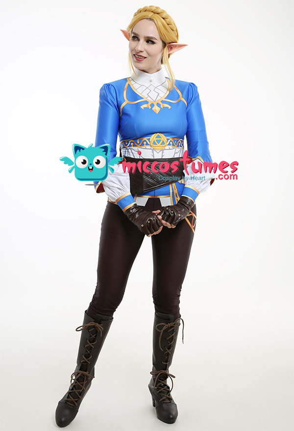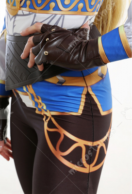 Costume Includes: inner coat, waist belt, pocket, gloves*2, pants. Material: spandex, pu leather, shirt fabric. Design Details: The outfit is digitally printed, only to restore each detail of Princess Zelda. The decoration on the front chest is made of rubber, and the patterns on the pocket adopts a heat-transfer process. The waist belt is embossing.