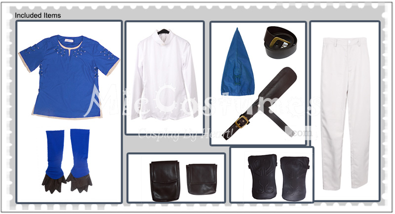| Included Items | white shirt, blue jacket, pants, belts, waist bags, armbands, hat, gloves |
