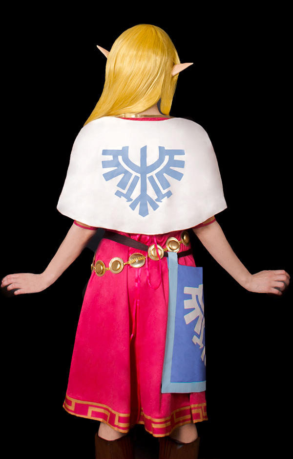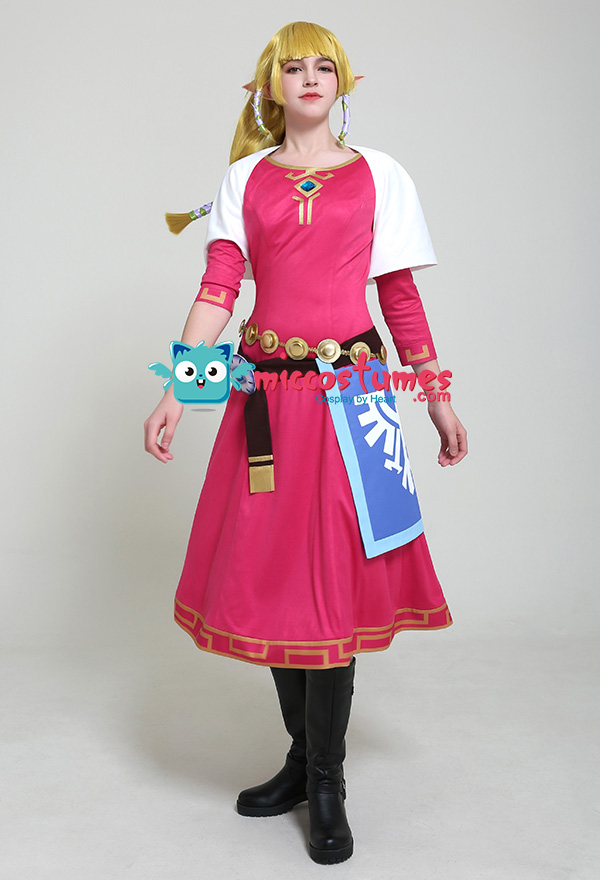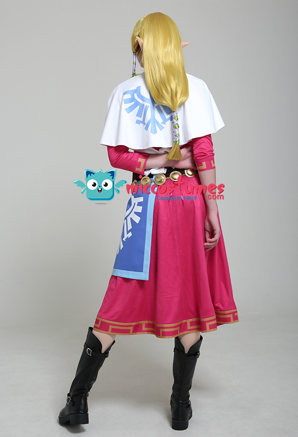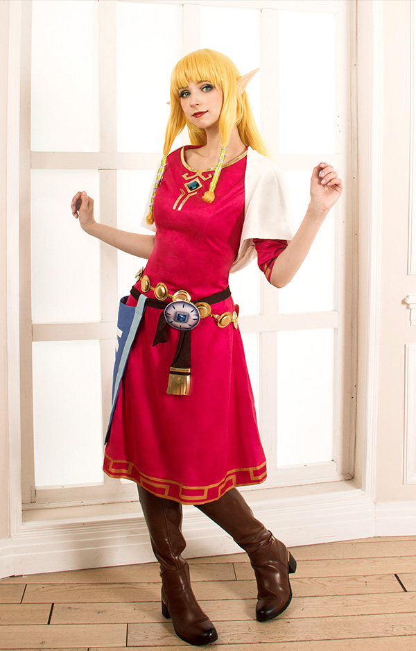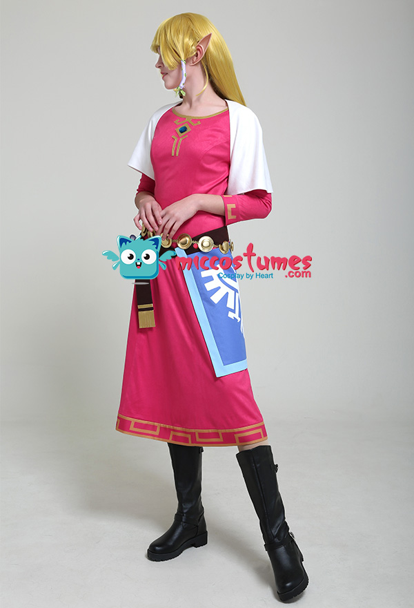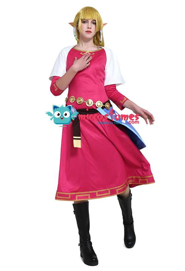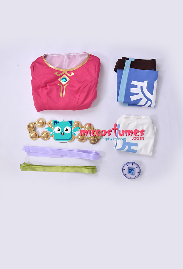 The costume includes dress, cape, waist jewelry*1, apron, belt, hair straps(green*3, light purple*3). It is made of uniform cloth, PU leather, suede fabric, lining cloth.