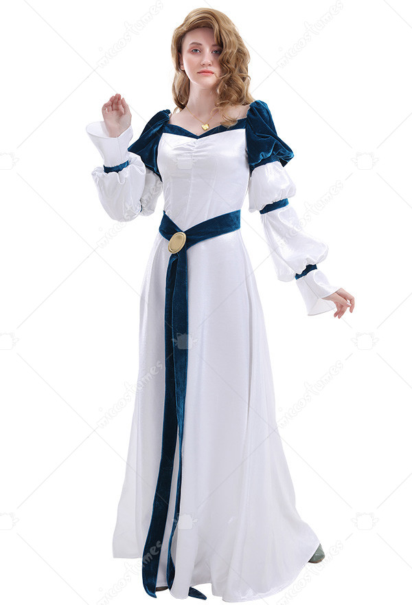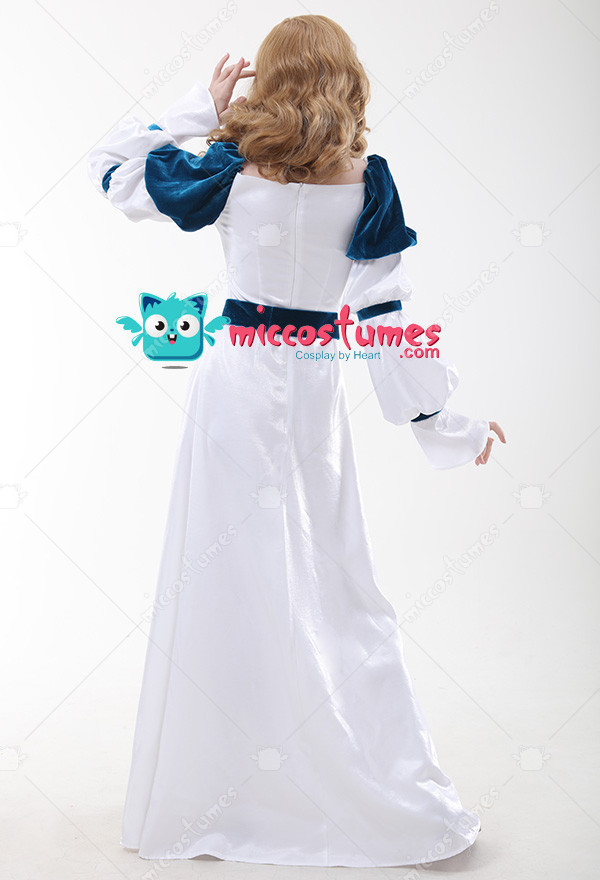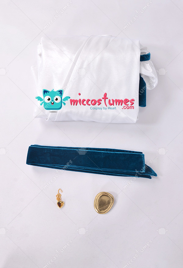 The costume includes dress, accessory*1, belt*1, necklace*1. It is made of PU leather, satin, lining, EVA.