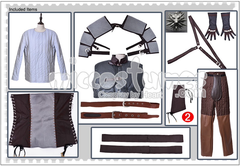 | Included Items | Shirt, leather vest, shoulder pads, corset, gloves, shoulder straps, waist belt, pants |