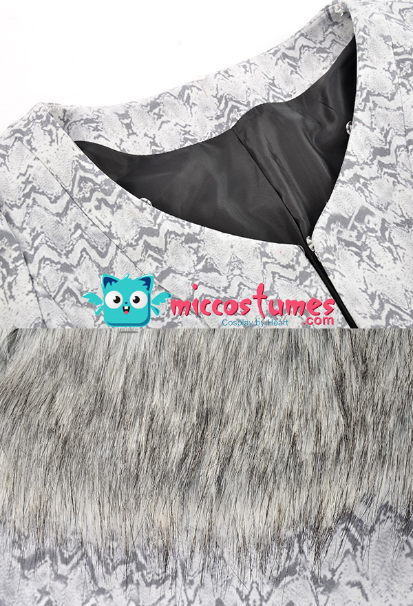 The costume includes coat, collar, cuff*2. It is made of lining, faux fur, scuba fabric.