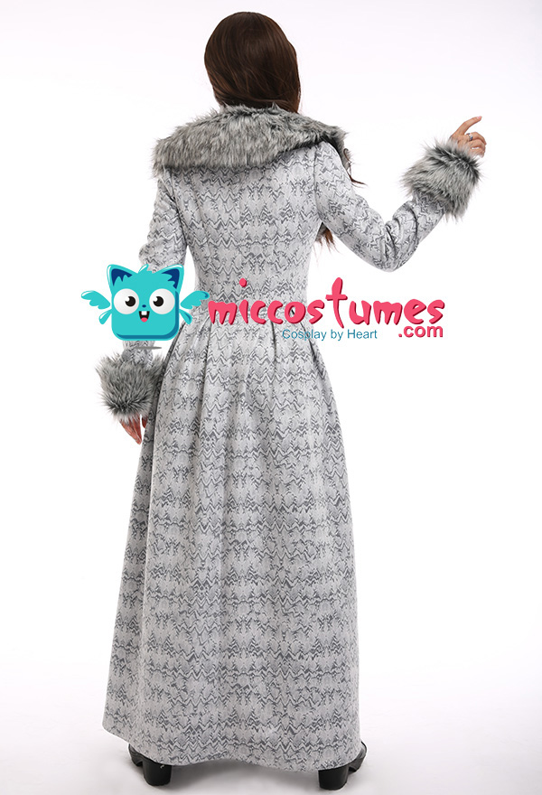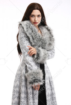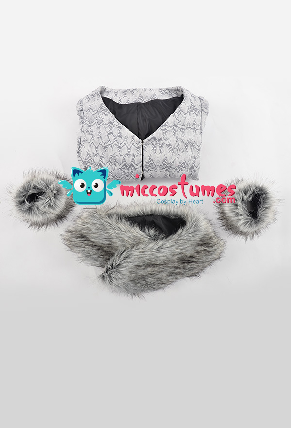 The costume includes coat, collar, cuff*2. It is made of lining, faux fur, scuba fabric.