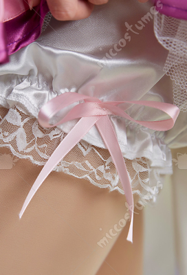 Design Details:This costume is made of satin for an overall gorgeous look. The apron is made of uniform cloth and cotton padding to give it a more textured look. With pannier, the dress is very gorgeous.