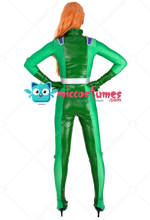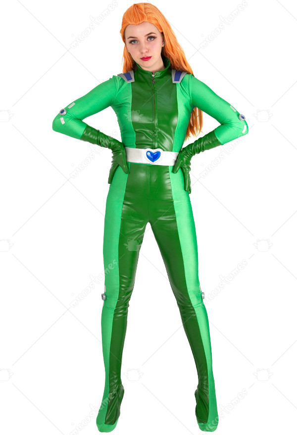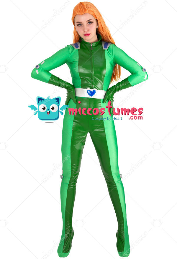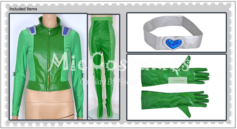 The costume includes upper garment, pants, belt and two gloves. The costume is made of spandex and PU leather.