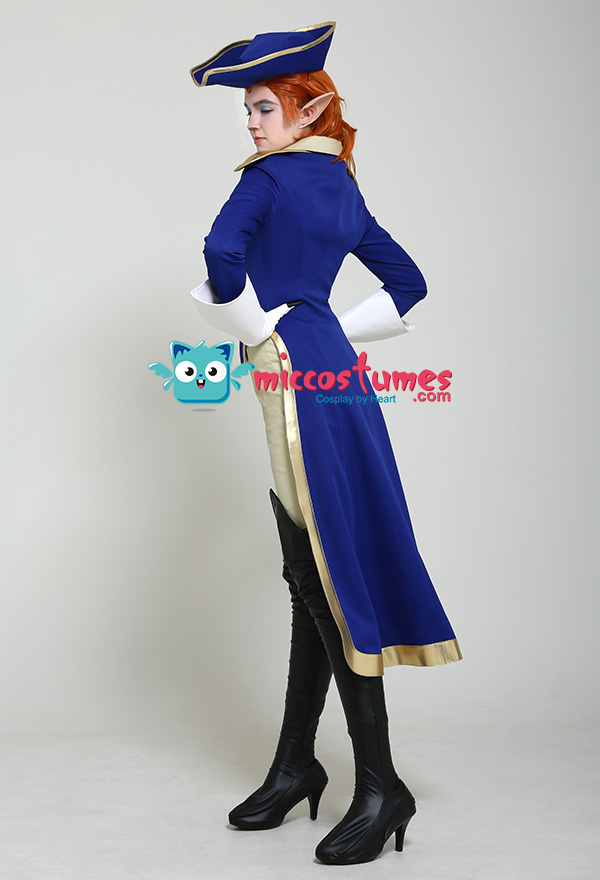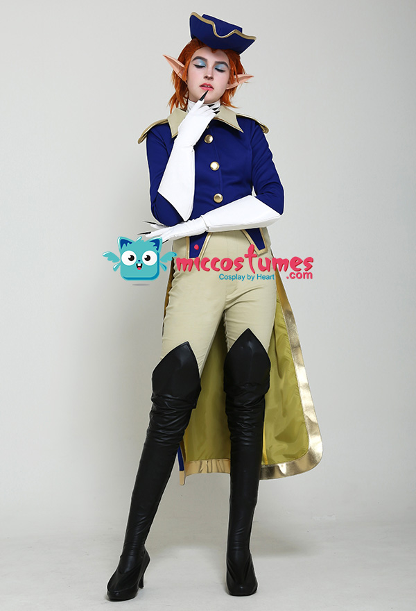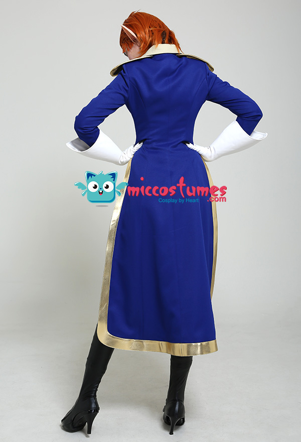 The costume includes coat, base shirt, pants, hat, shoes cover*2, glove*2. It is made of uniform cloth, spandex, PU leather, lining cloth, EVA, Sirospun.
