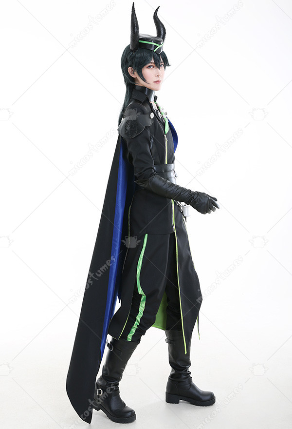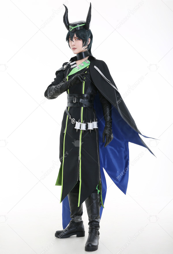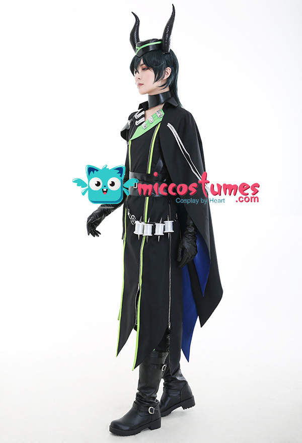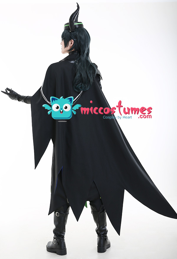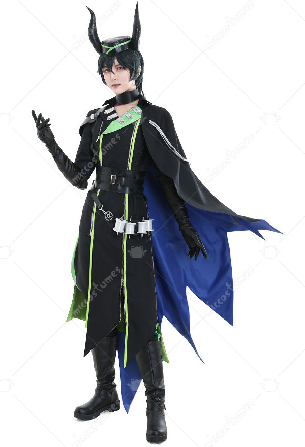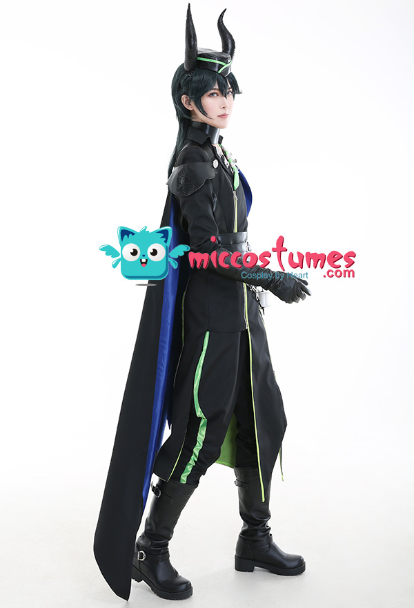 Costume Includes: coat, pants, cloak, waistband*1, belt*1, waist pendants, hat, choker, glove*2, sheepshead brooch*1. Materials: uniform cloth, PU leather, lining, alloy. Nice Details: The Malleus Draconia costume is made of selected materials, luxurious and elegant. Custom-made zippers, the horned hat, handmade waist pendants and exquisite embroidery are the finishing touches of the garment. The cloak can be separated from the costume, or fixed them together by the brooch.
