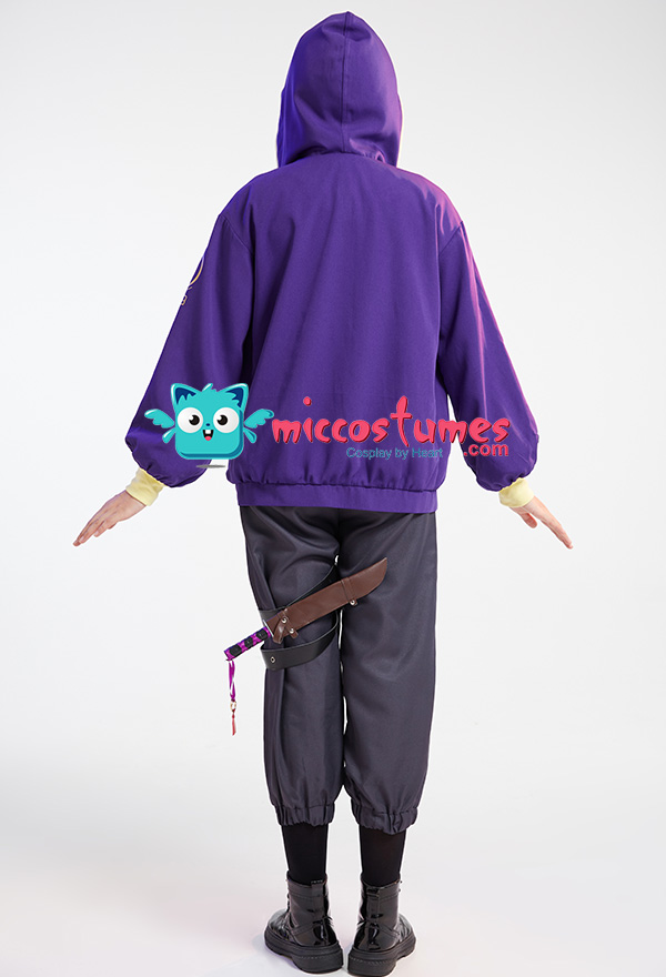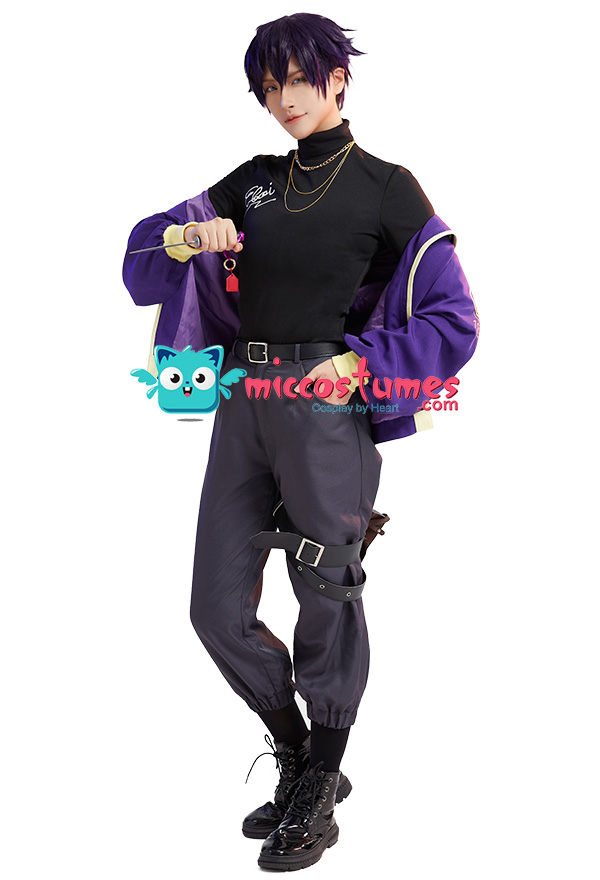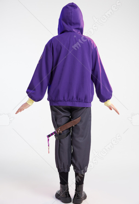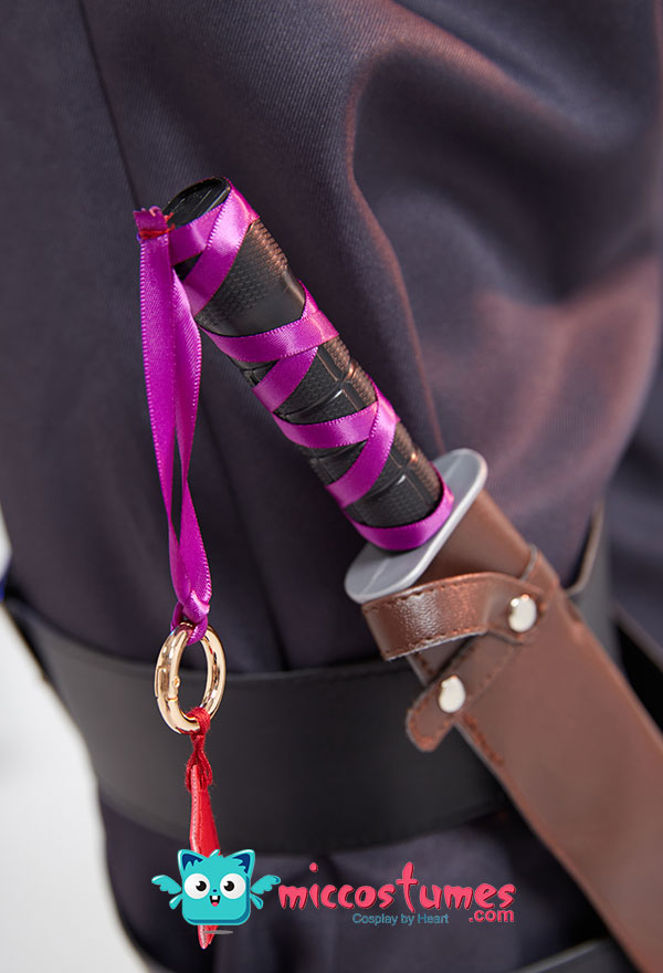 Design Detail: The jacket and sweater are both printed by screen printing for several times to ensure the quality of color and prints. All needed accessories are prepared including artificial dagger and sheath. The inner black sweater has zipper on the back in order to be crisp.