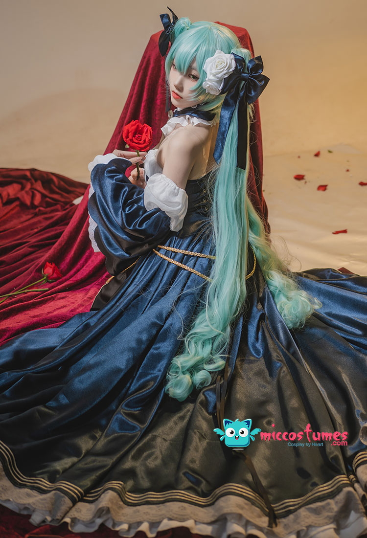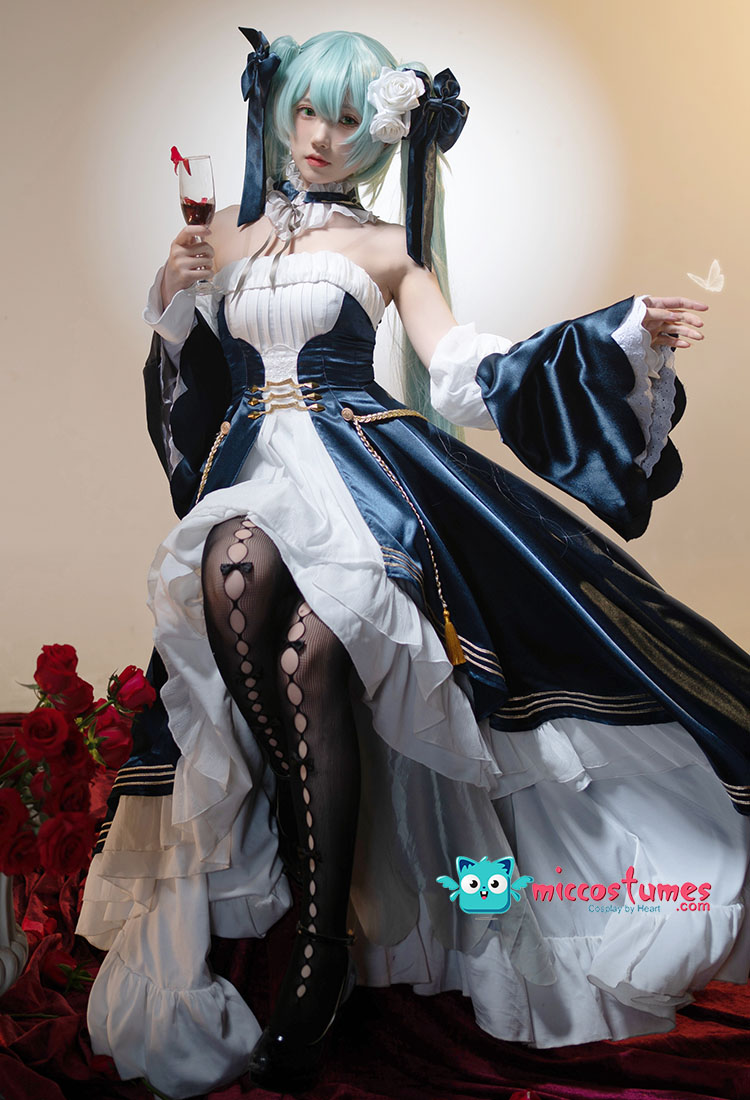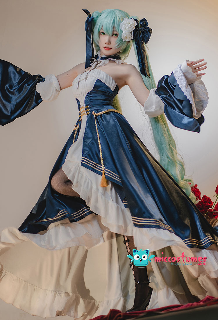 Vocal Cosplay Costume Dress and Sleeves with Hairpins and Thigh Socks
