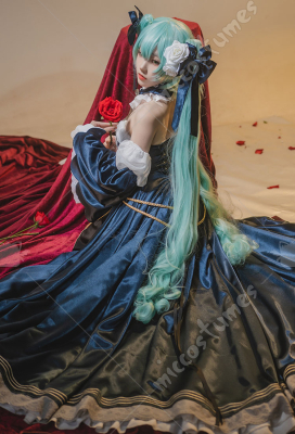 Vocal Cosplay Costume Dress and Sleeves with Hairpins and Thigh Socks