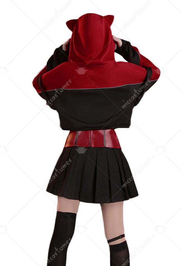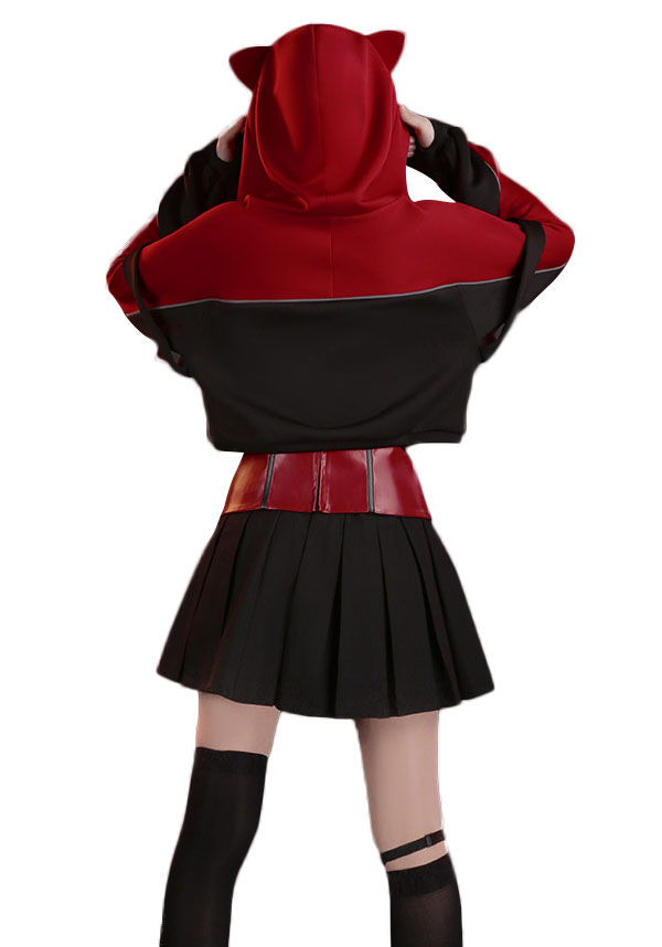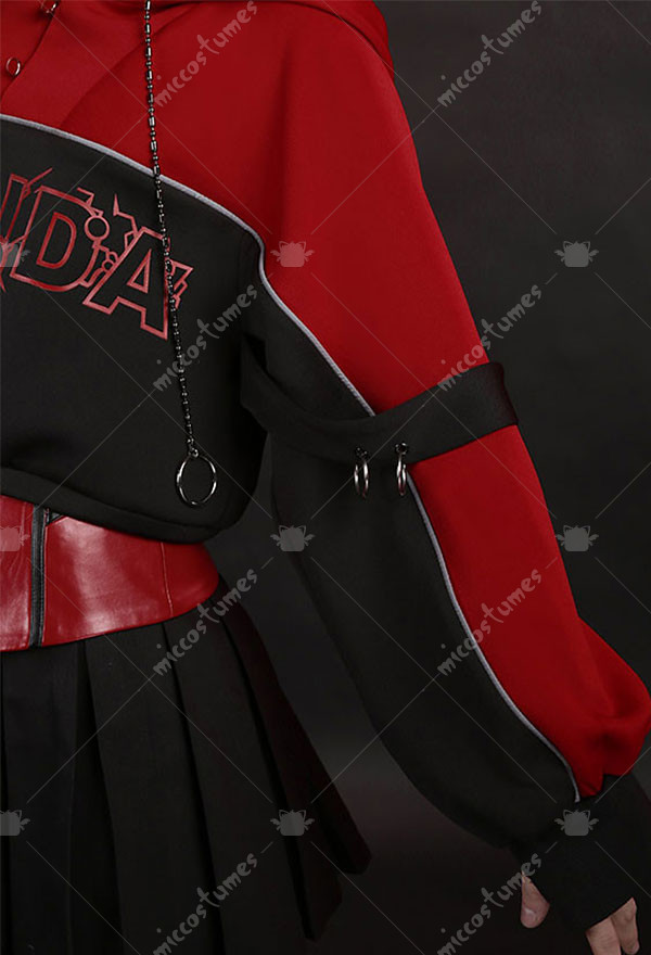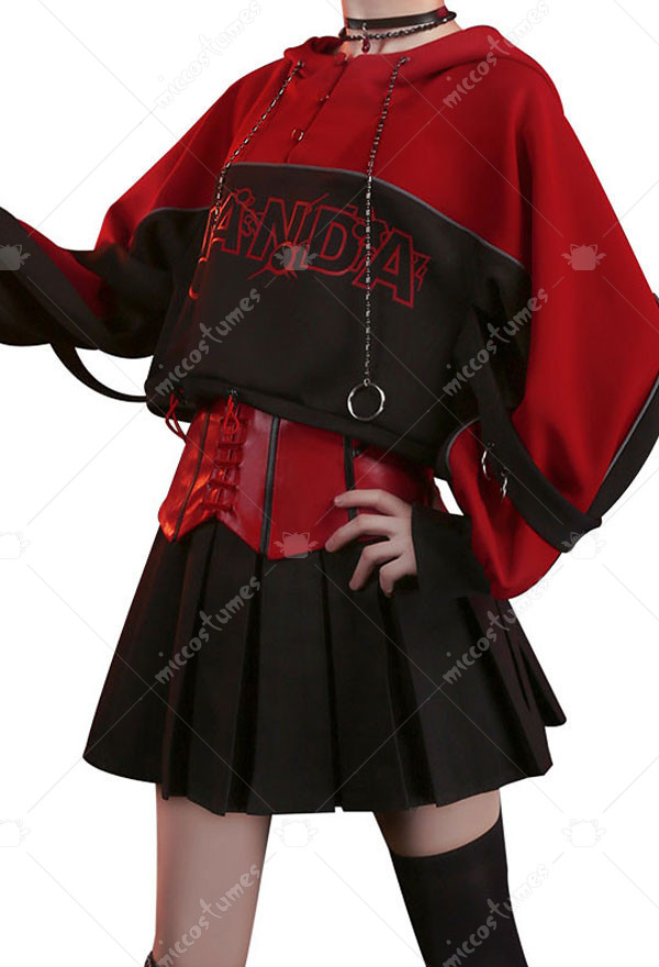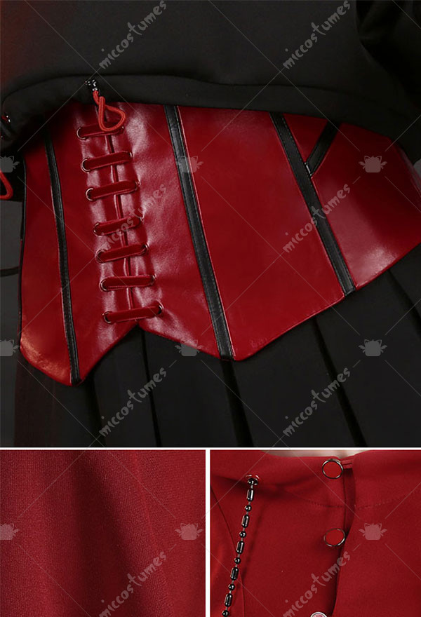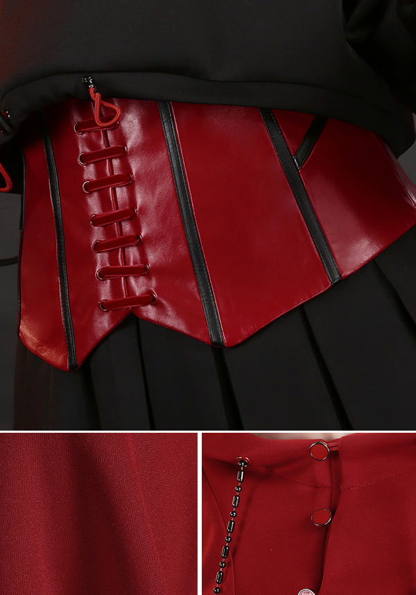 This costume includes shirt, skirt, corset, choker, leg accessories, waistbands, socks. It is made of imitation leather. Casual style, simple and chic, breathable fabric, comfortable to wear.