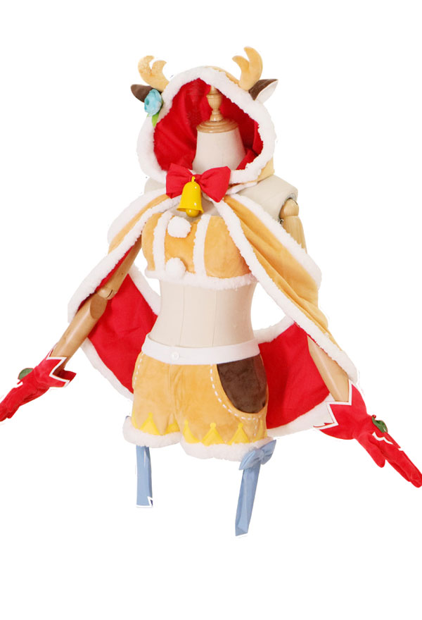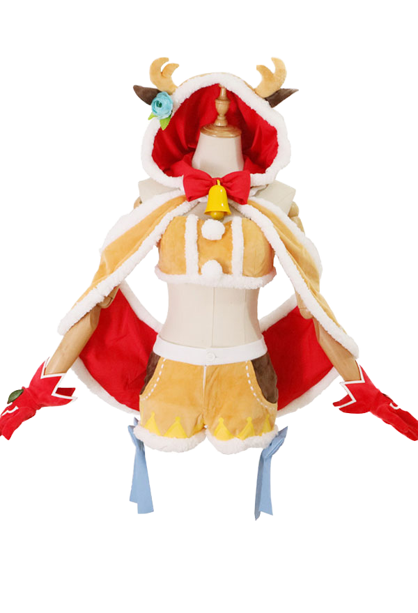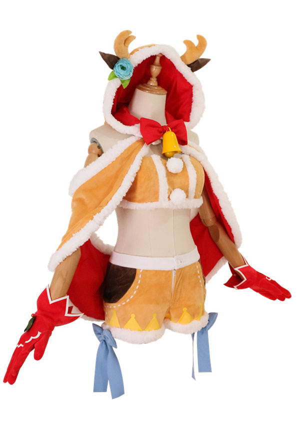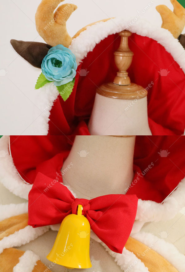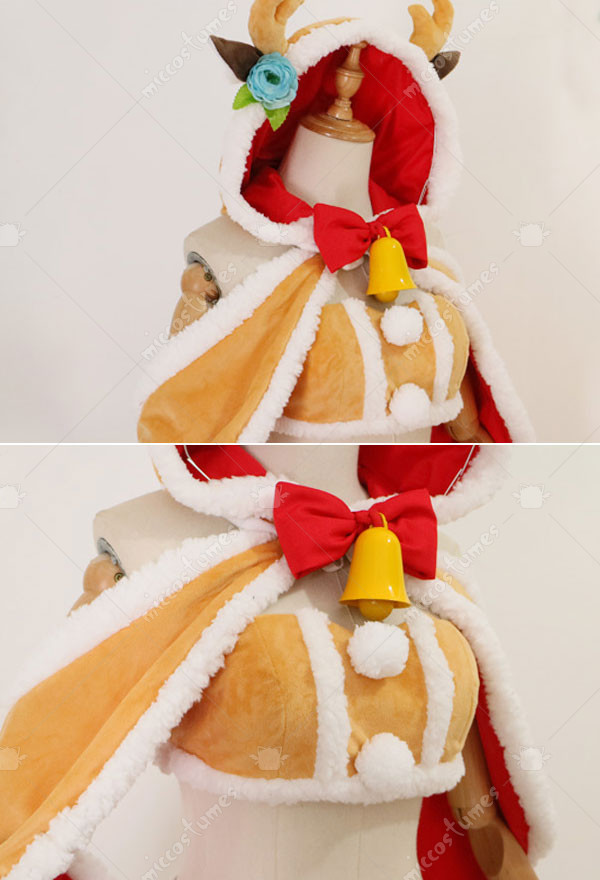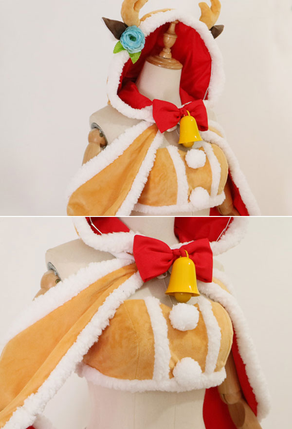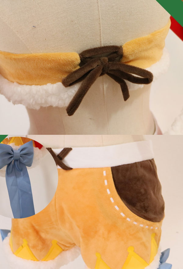 The costume includes tube top, cloak, shorts, bowknot, stocking*1, thigh ring*1, glove*2, clip, tail. It is made of fleece.