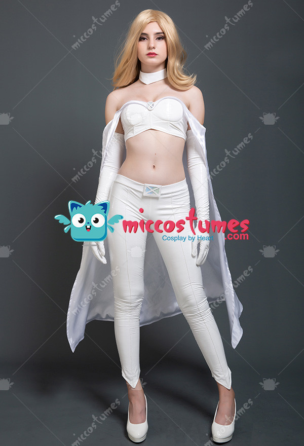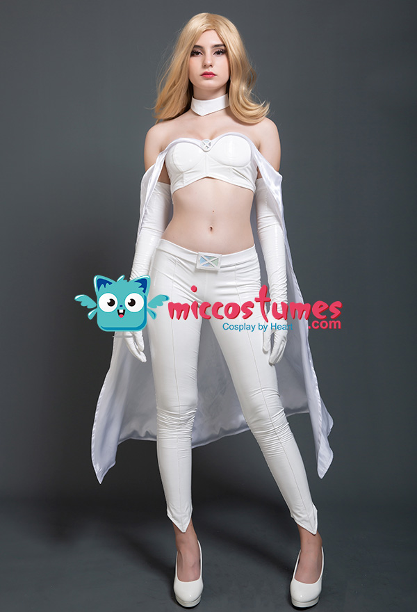 The costume includes top, pants, choker, glove*2, transparent bra straps*2. It is made of chiffon, PU leather, satin, EVA. This White Queen Emma Frost Cosplay Costume is Inspired by X-Men. Order to Made. It is not an official Marvel Comics product, not approved by or associated with Marvel Comics, but carefully manufactured by KISIBE Studio.