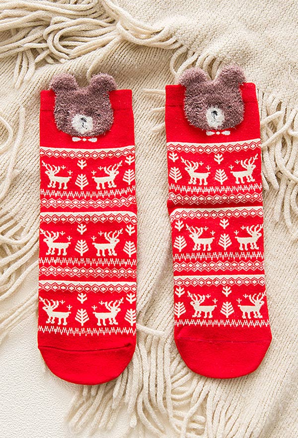 Winter Snow Christmas Reindeer Santa Claus Xmas Gift Red Cute Bear Cartoon Cotton Socks