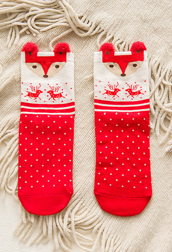 Winter Snow Christmas Reindeer Santa Claus Xmas Gift Red Cute Fox Cartoon Cotton Polka Dot Socks