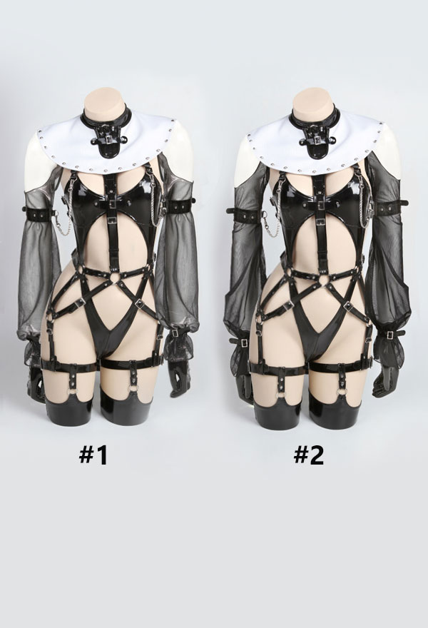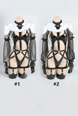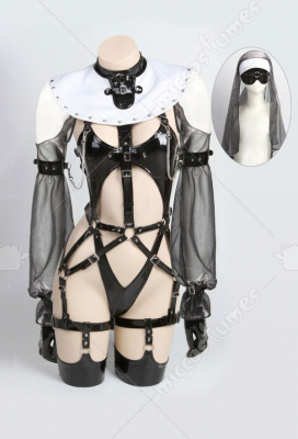 | Included Items | bodysuit, nun hat, blindfold, leg straps*2, arm rings*2, chest chain, gloves*2, stockings*2, nat yarn sleeves*2, cloak |