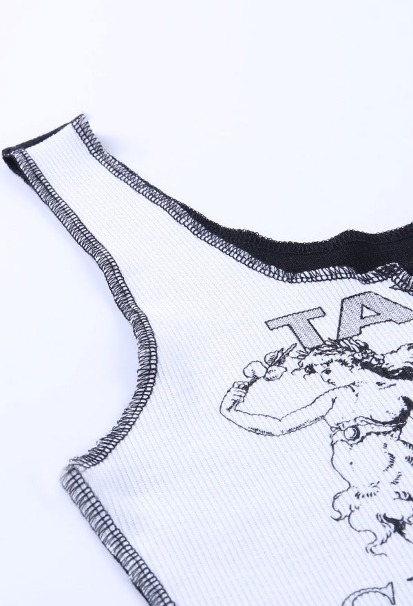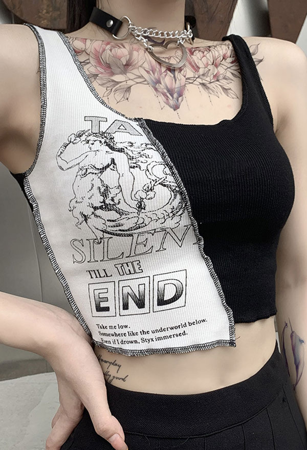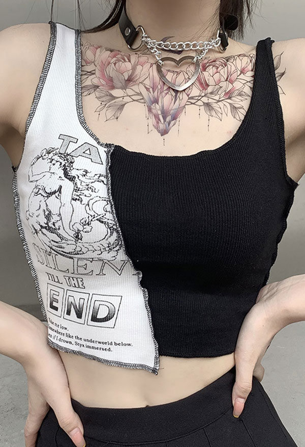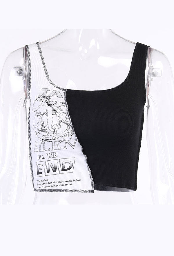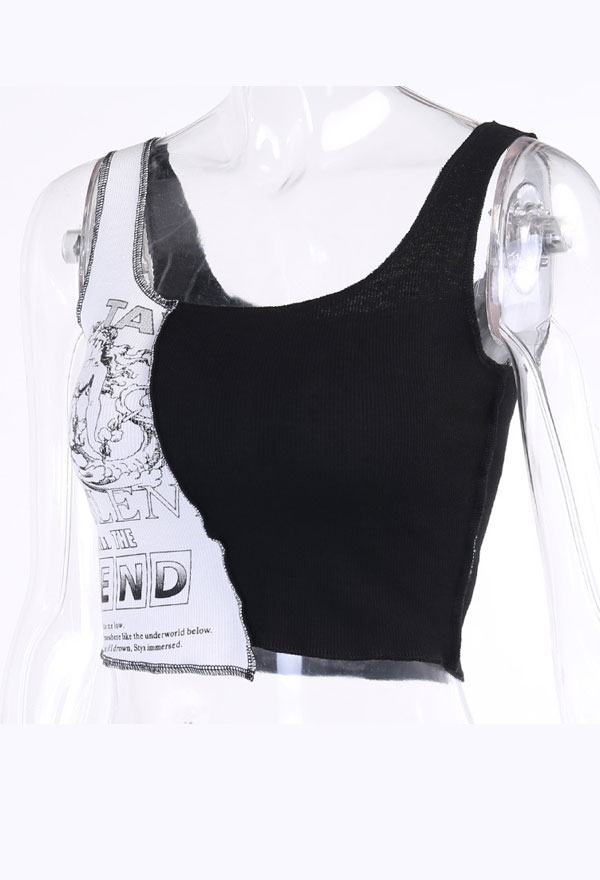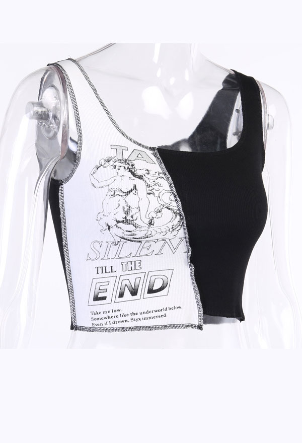 Woman Gothic Cool Dark Style Color Contrast Printed Sleeveless Vest Top Costume Outfit for Spring Summer