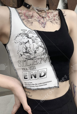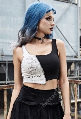Woman Gothic Cool Dark Style Color Contrast Printed Sleeveless Vest Top Costume Outfit for Spring Summer