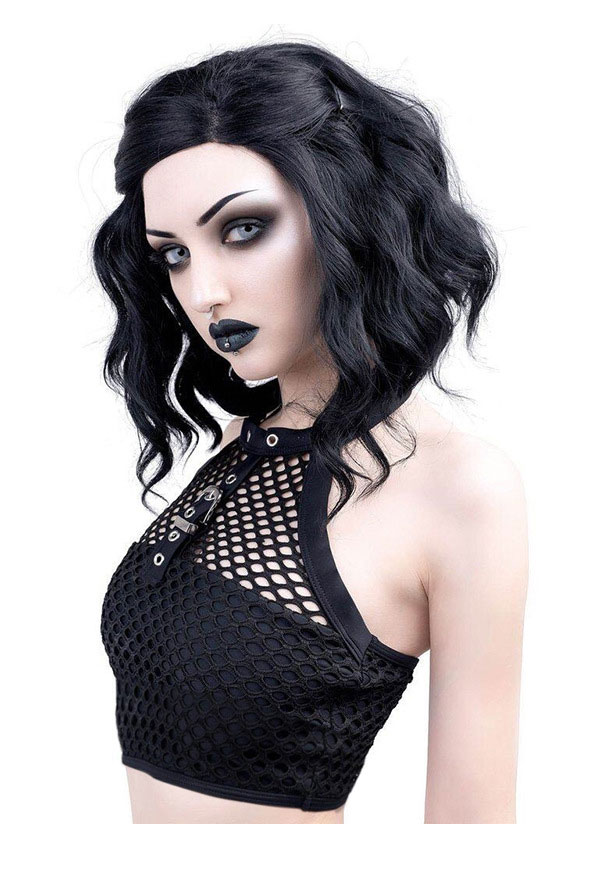 Be the first to review “Woman Gothic Cool Dark Style Grid Pattern Belt Deccorated Spliced Button Worn Vest T-Shirt Top Costume Outfit”