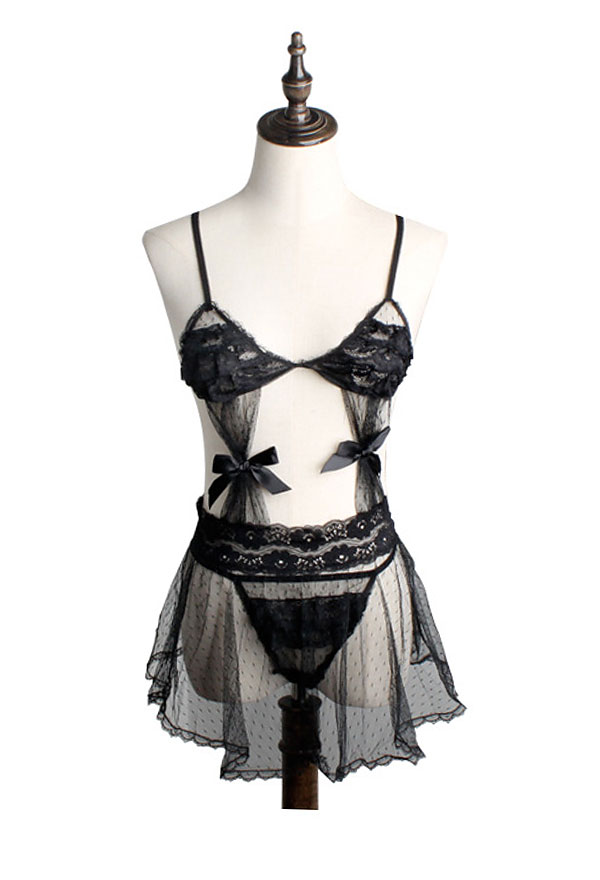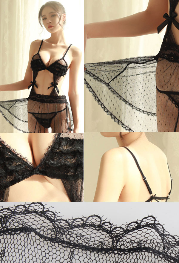 Costume Includes: lingerie, thong. Material: polyester, nylon, spandex.
