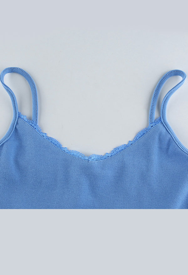 Woman Sexy Cute Fashionable Lace Decorated Spliced V-Shape Collar Sleeveless Lingerie Vest Top Costume Outfit for Summer