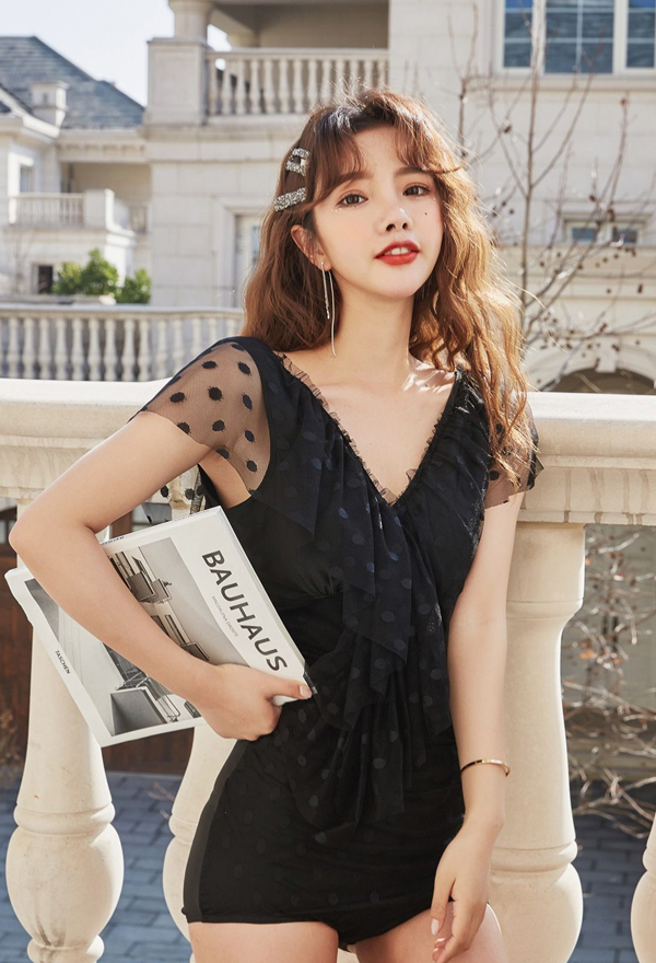 Be the first to review “Woman Sexy Cute One Piece Deep V Shape Collar Short Sleeved Backless Lace-Decorated Dress Swimsuit Swimwear Bodysuit Beach Suit Bathing Suit”
