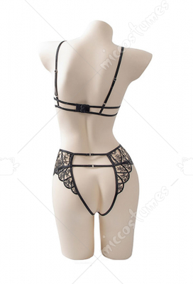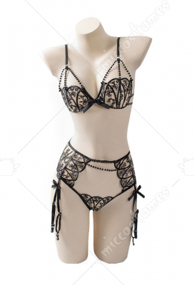 Costume Includes: top, thong, garter stockings*2. Material: polyester.