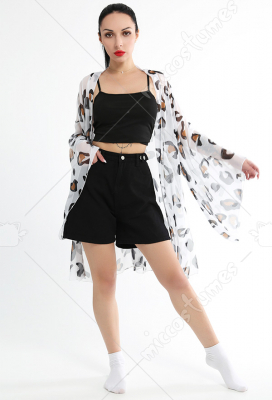 Women Adult Cow Leopard Pattern Print Kimono Haori Cover-Up Cosplay Costume Outfit