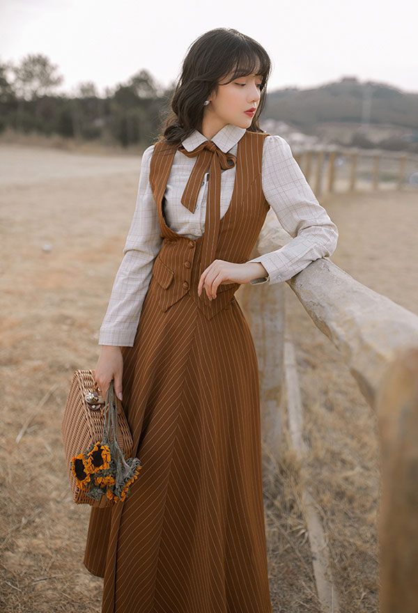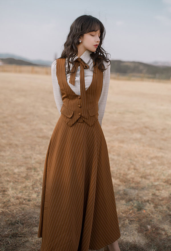 Costume Includes: vest, shirt, tie, skirt. Material: suit fabrics, ramie cotton fabric.