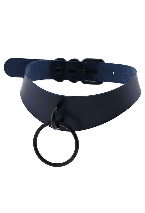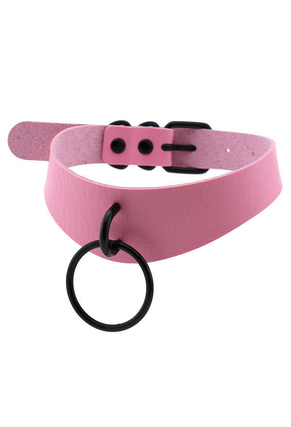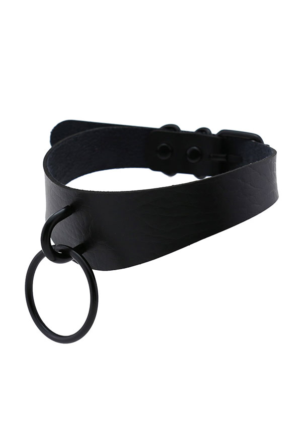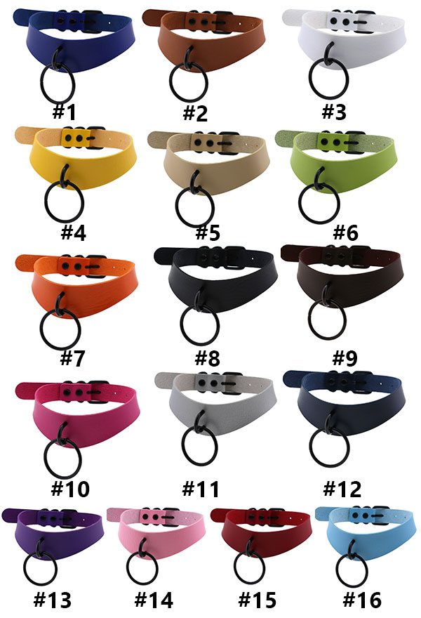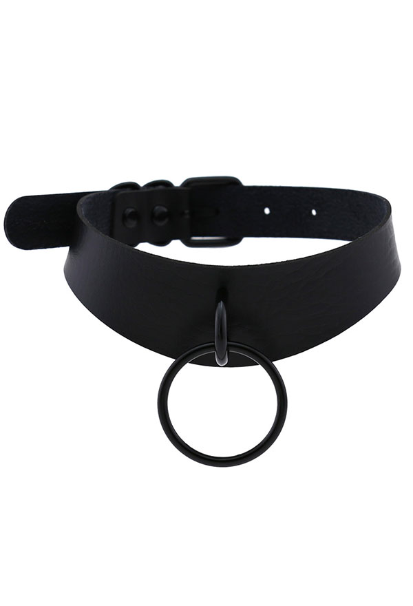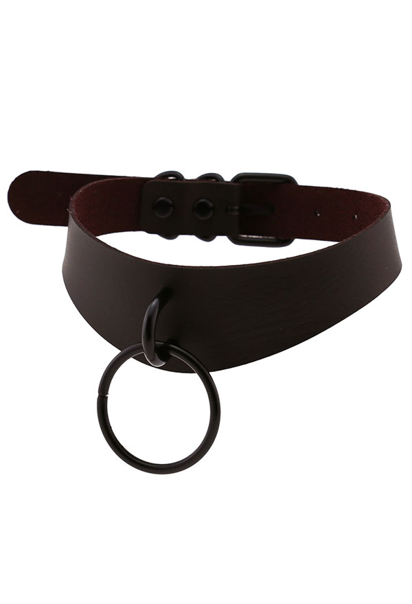 Women Buckle Design Handmade Leather Choker with O-Ring Pendant