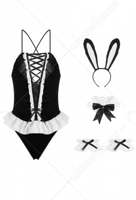 Costume Includes: jumpsuits, choker, sleeves*2, thong. Material:polyester fibers