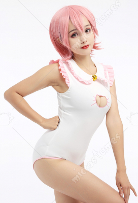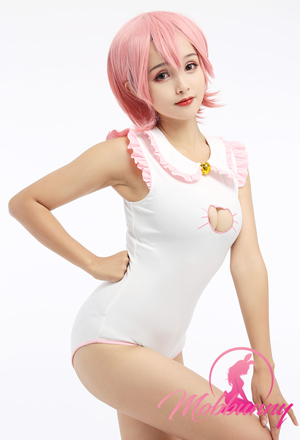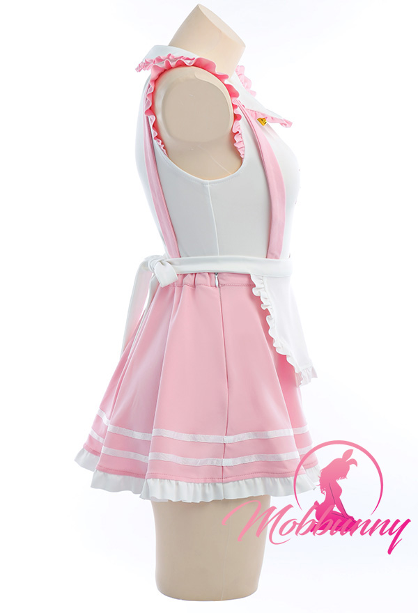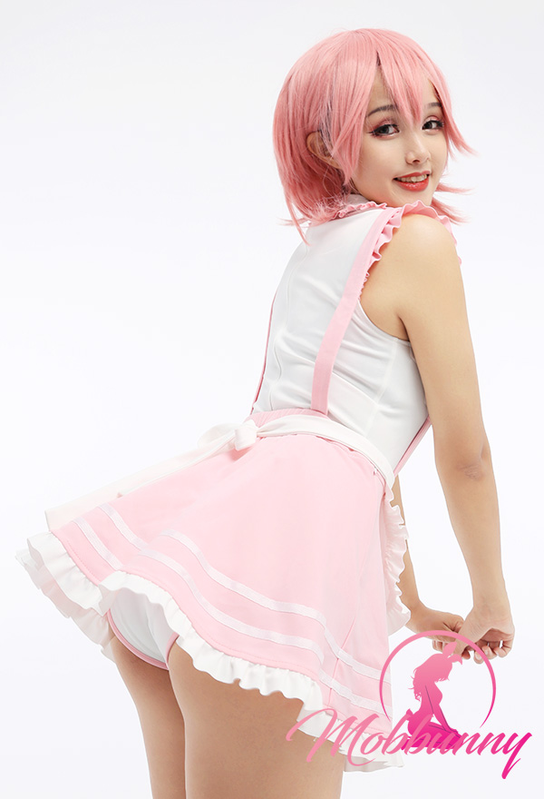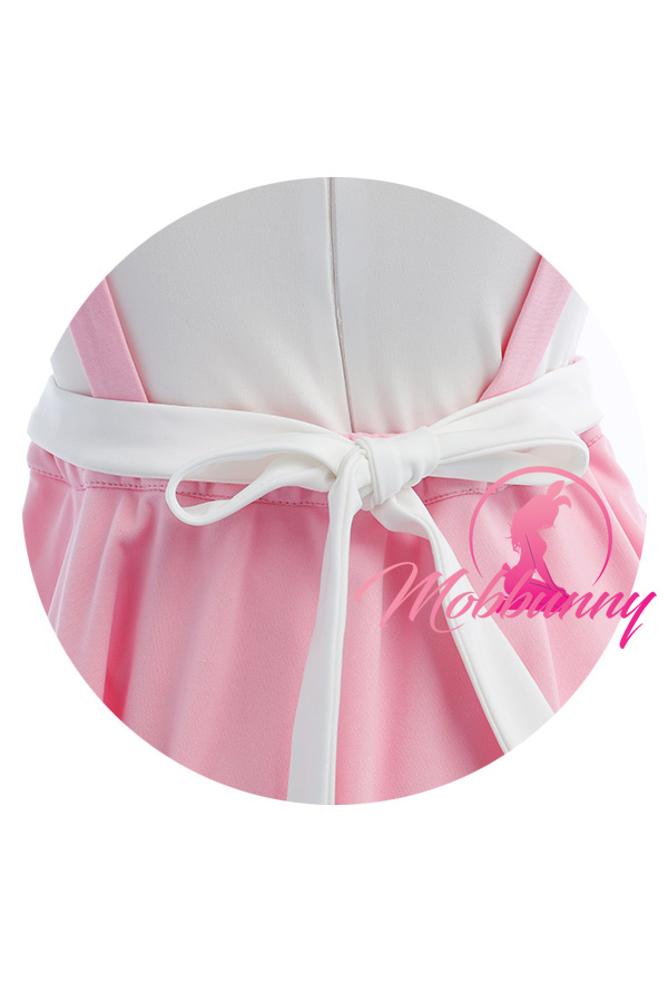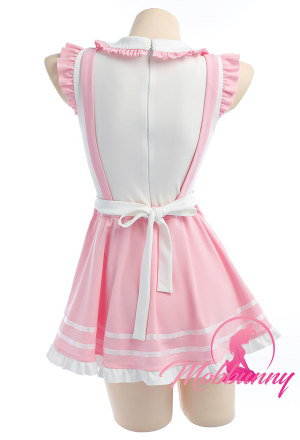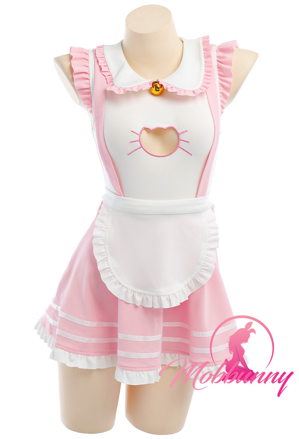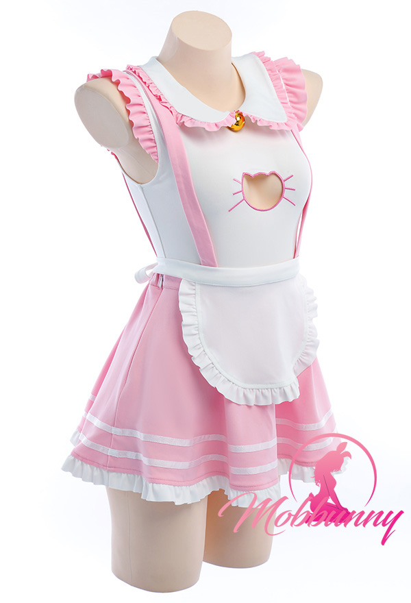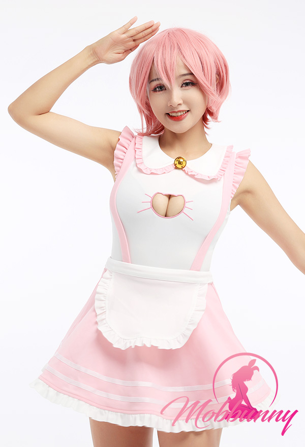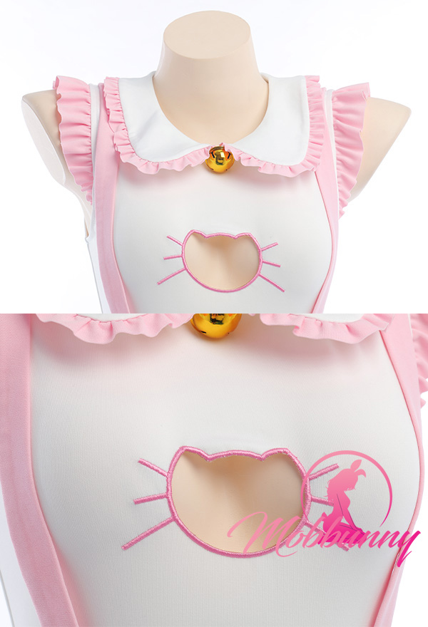 Design Detail:embroidered cat shape hollowed on chest. The shoulder straps on apron can be adjusted. The skirt's waist is elastic,so it can be adjust. Bodysuit is easy for wearing for it has hidden button on the bottom.