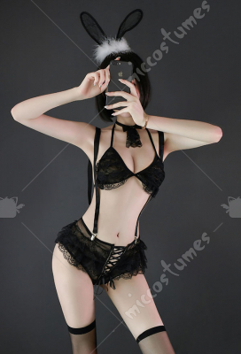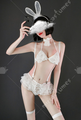 Costume Includes:top,thong,choker,shoulder harness*2. Material:milk silk,floweral net.