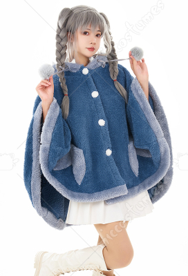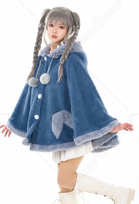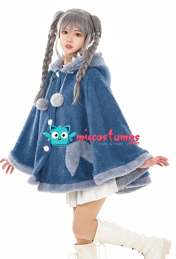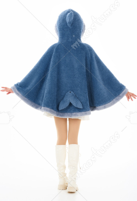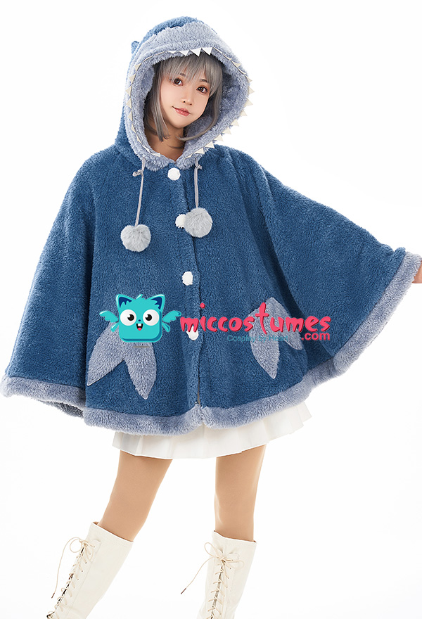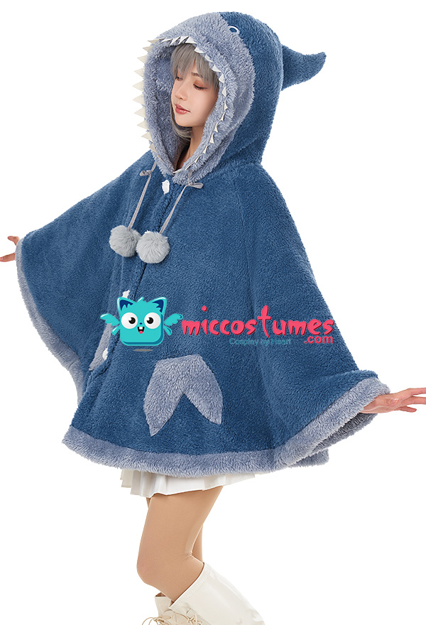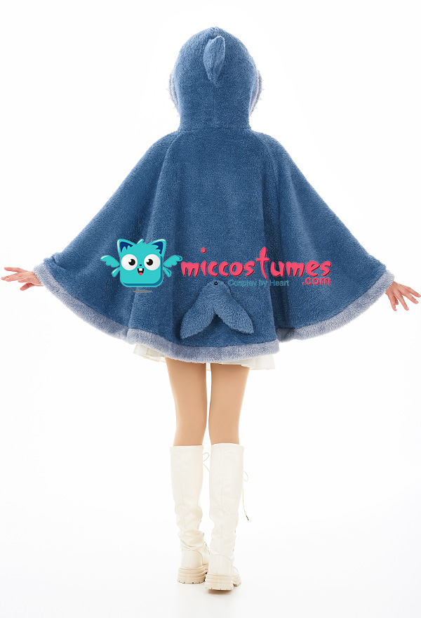 Women Hooded Cloak Blue Shark Poncho Cape Coat