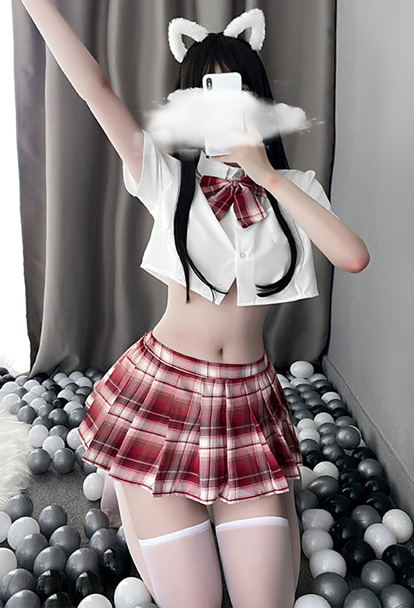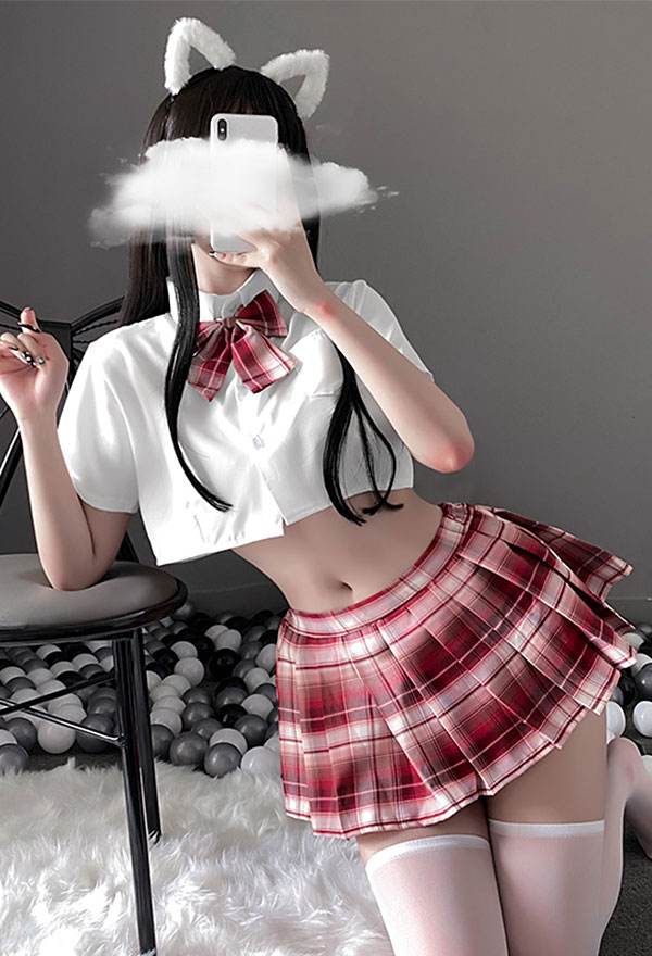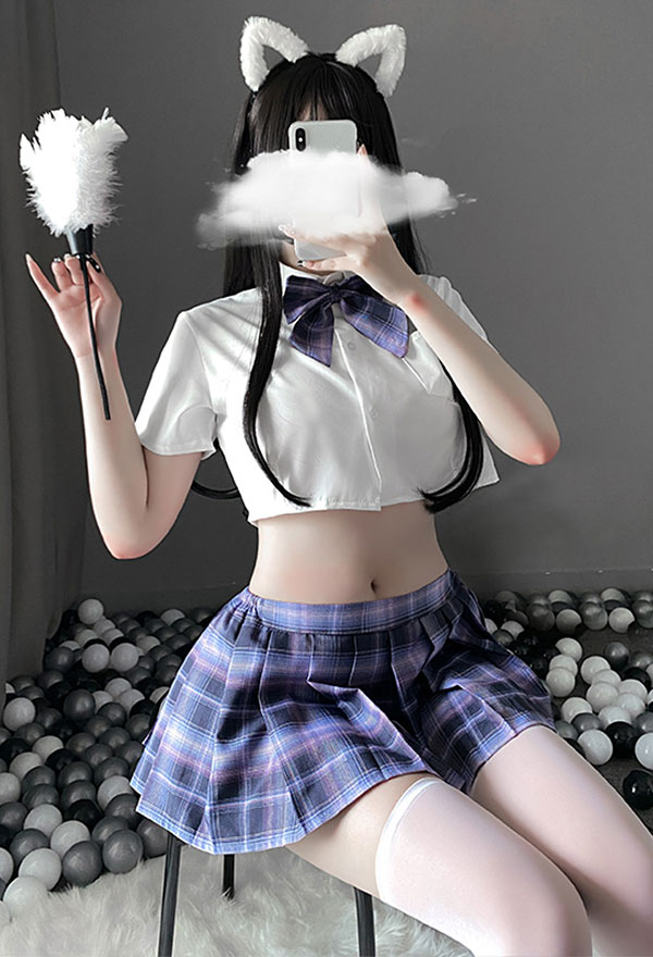 Women Japanese Style JK Uniform Two Piece Lingerie Set with Bow Choker