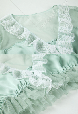 Women Lace Spliced Floral Pattern Two-Piece Transculent Lingerie Bodysuit Set