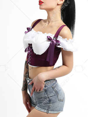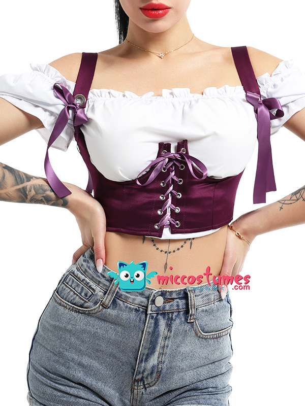 Costume Includes: corset. Material: stretch hemp, steel bones, plastic bones. Design Details: Shiny double side stretch hemp, shoulder bowknot design adjustable strap, front middle adjustable lace-up strap , easy to wear and take off.