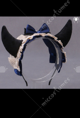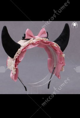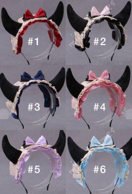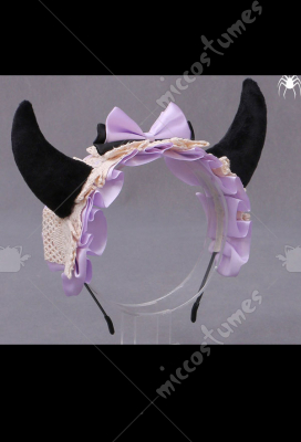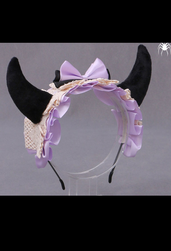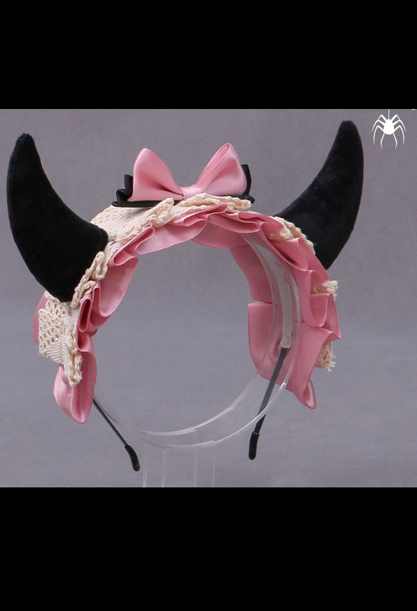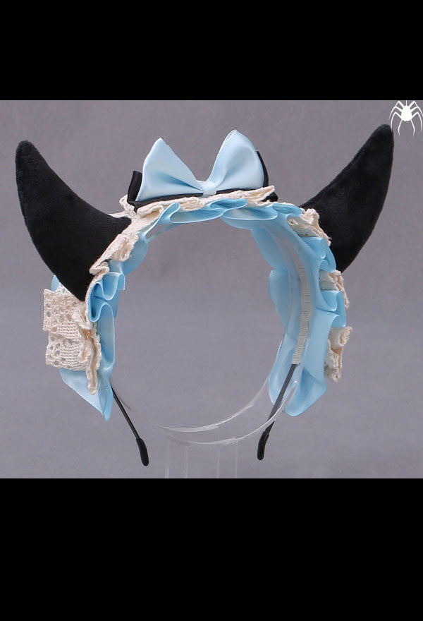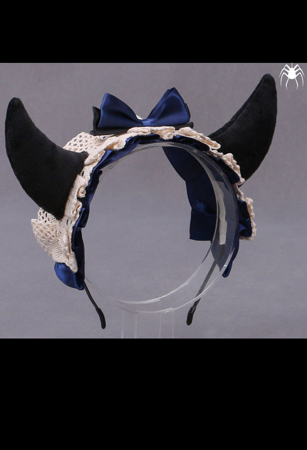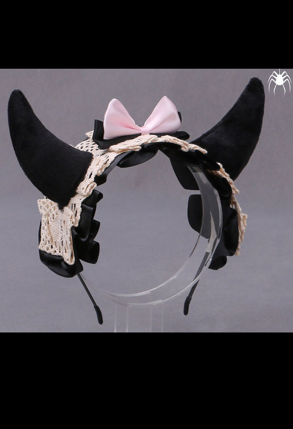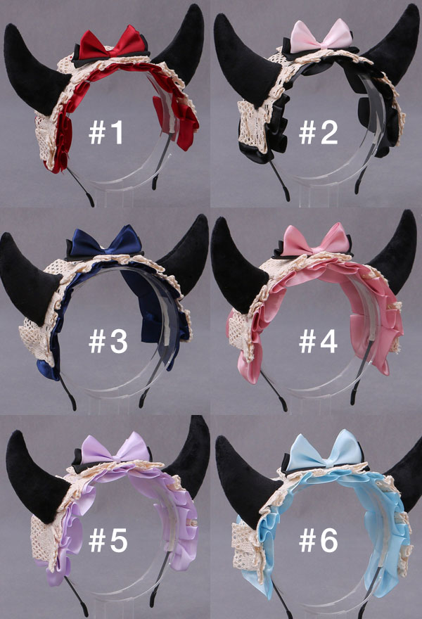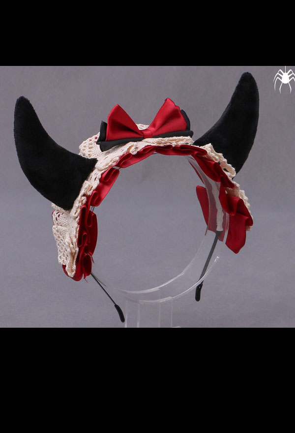 Women Lolita Cute Headdress Imp Devil Horn Lace Headwear Ribbon Bow Headband Cosplay Costume Accessories