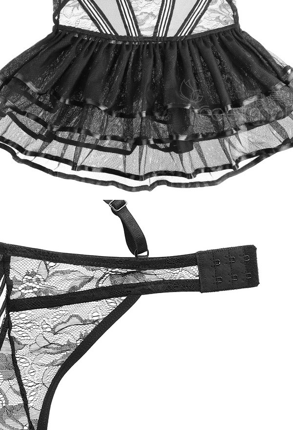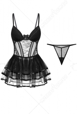Costume Includes:dress,thong,stockings. Material:net yarn,lace
