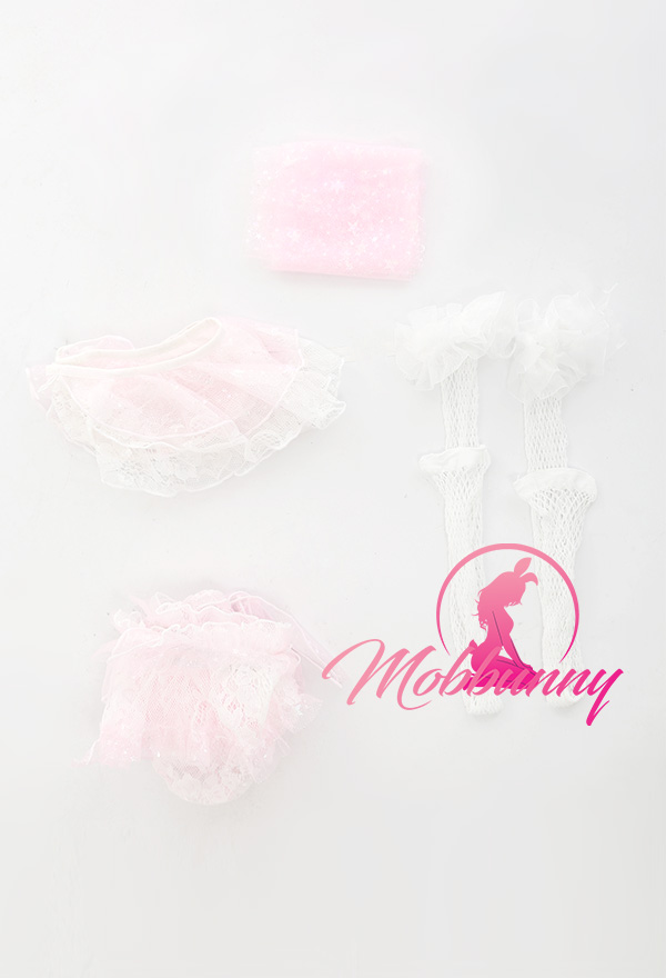 Costume Includes: top, shorts, eye accessory, stockings*2. Material: net yarn, lace. Design Details: The outfit is designed as a translucent costume, with adjustable designs for more comfortable wearing. The shoulder straps are self-tie.