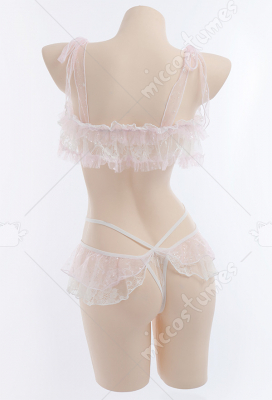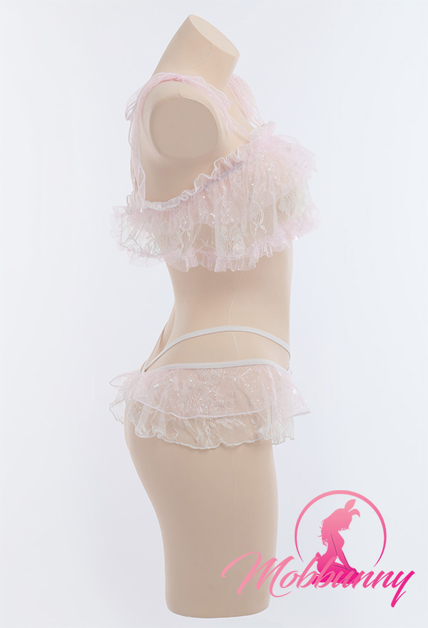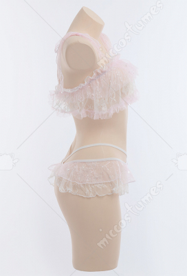 Costume Includes: top, shorts, eye accessory, stockings*2. Material: net yarn, lace. Design Details: The outfit is designed as a translucent costume, with adjustable designs for more comfortable wearing. The shoulder straps are self-tie.