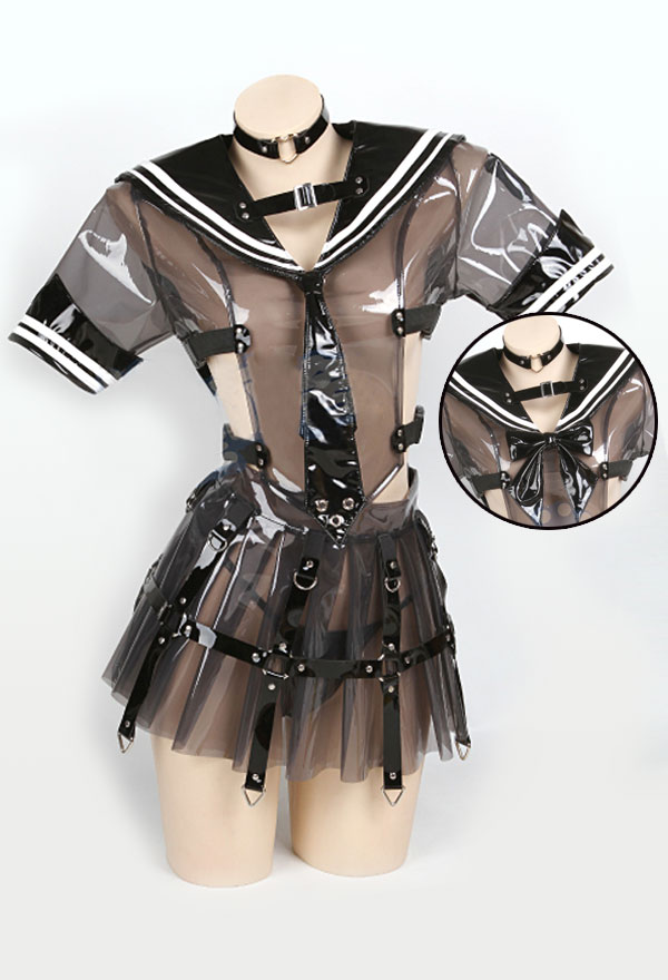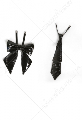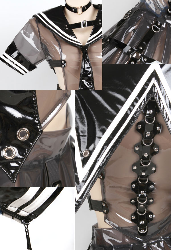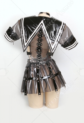 The costume is designed by 黑暗王朝.Costume Includes:top,choker,bow,tie,skirt,thong.Material:patent leather