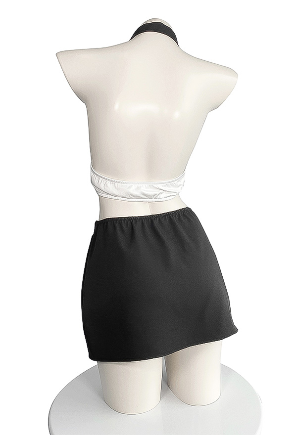 Costume Includes:top,skirt,thong,stockings.Material:milk slik