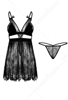 Be the first to review “Women Sexy Hollow Halter Lace Suspender Dress Three-point Sleepwear Lingerie Costume Outfit”