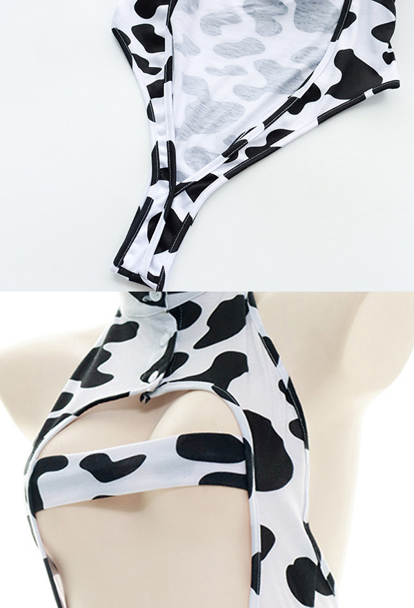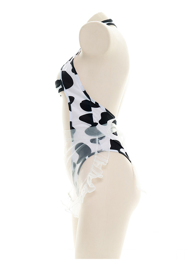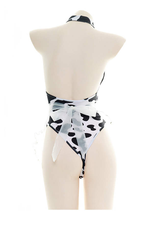 • Costume Includes: cow printed one-piece bodysuit, apron.
