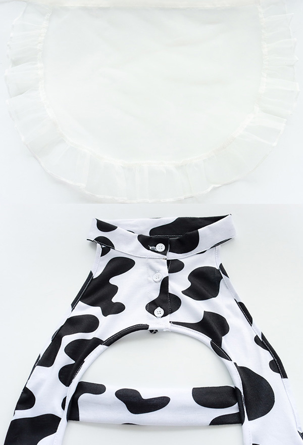 • Design Details: The costume adopts original design, with three rows of buttons and a strip on the bust side, is very special for wearing. The covering of organza apron increases a sense of mystery, and cow print on the costume makes you look more lively.