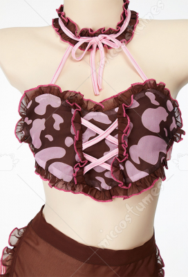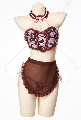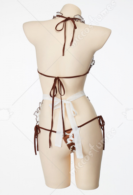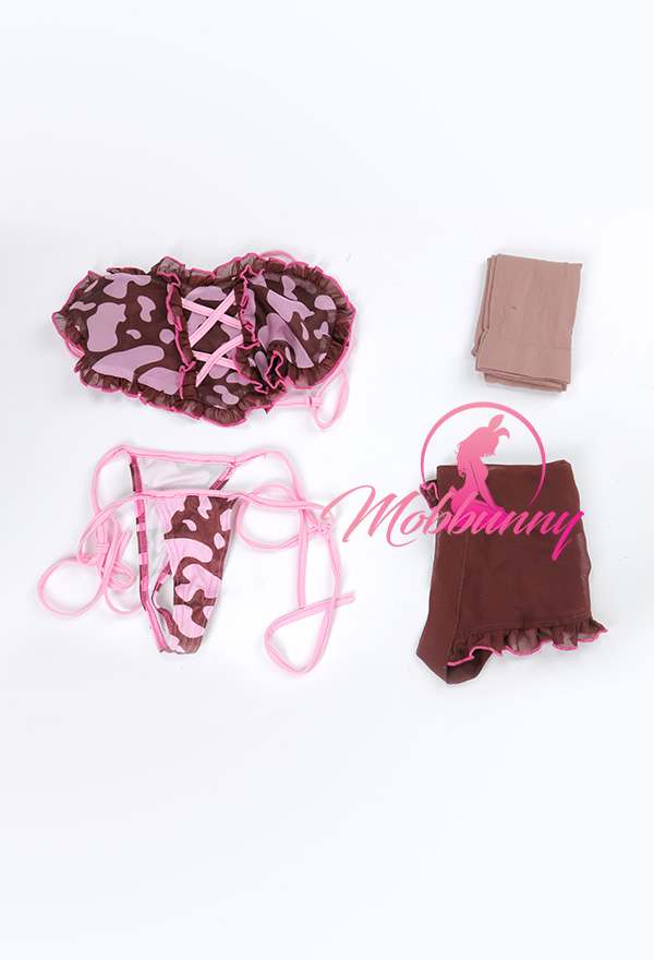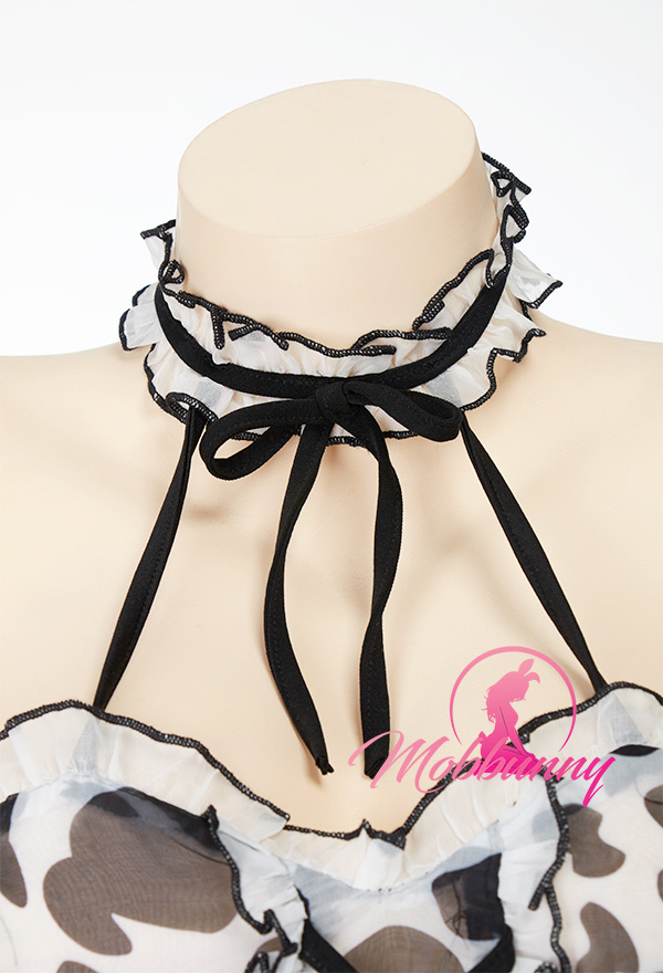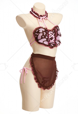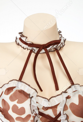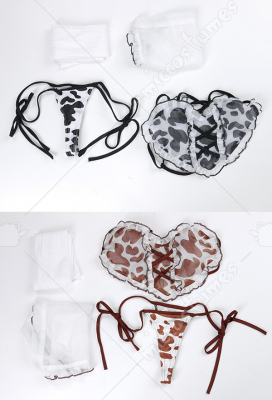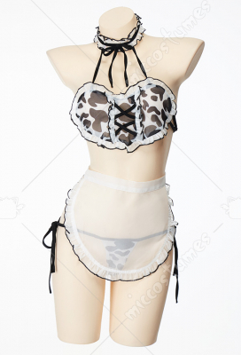Costume Includes: top,briefs,apron,stockings. Material: chiffon,micro fiber,organza. Design Details:The front middle part is decorated with digital milk cow printing, heart-shaped translucent top. There are three styles available.